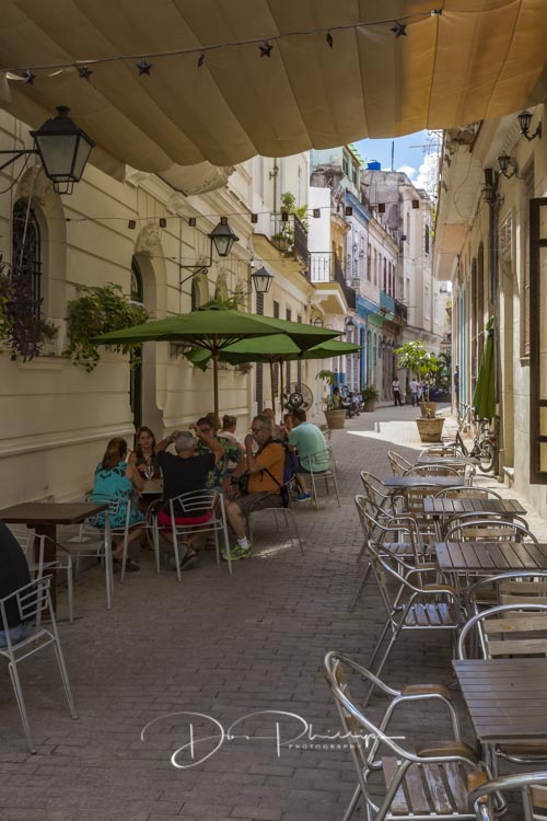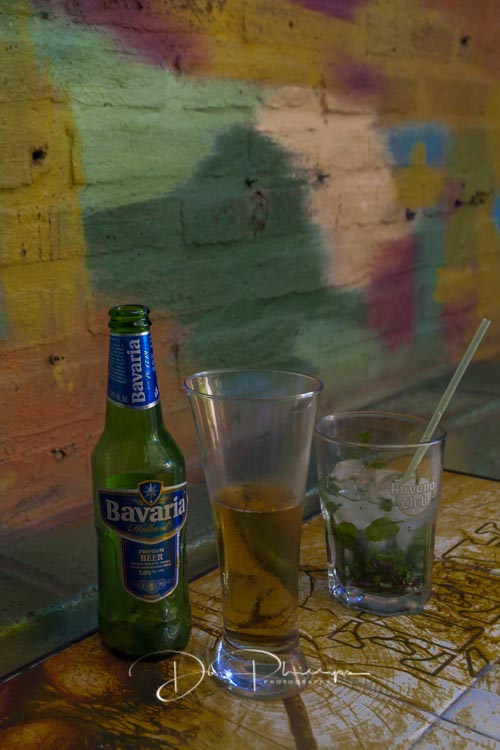 Walking back through Old Habana towards the shipyards, horse drawn carts are everywhere and outdoor cafes abound because it is more pleasant to be outdoors than in unless you can afford air conditioning here. As I have pointed out before, glass windows are an expensive commodity in Cuba that only the wealthy can afford. Open air stored for the most part some with security bars for protection, but very few glass windows. We get lucky and find a bar with glass windows AND air conditioning and we stop for a brief respite for a cool Mojito and a cold beer. It is also our luck that within a few minutes of being there, a guitar player walks in and starts practicing his craft with some salsa music! So my camera is happy with more up front and personal photos and our wallets are unhappy, but satisfied with less tip money in them!