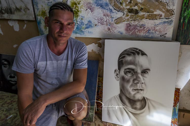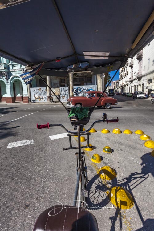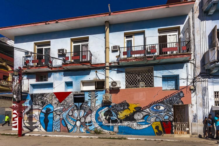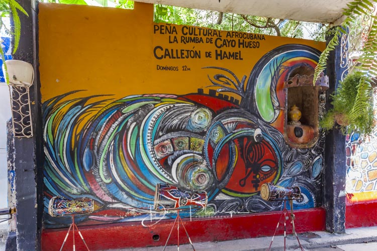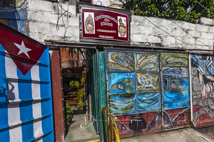 Looking at my pre-travel notes, I am reminded of a place to visit that is not open tomorrow so we hire a bicitaxi to take us over into the newer part of Habana to a place called, “Callejón de Hamel” (Hamel Alley)