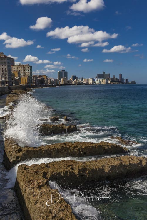 We come to the Malecon and start walking the few miles back towards Old Habana. The ocean scenery, old cars and architecture take us back again in the time machine. The architectural richness of the Malecón is expressed through 18th- and 19th-century stately homes, followed by a row of 20th-century buildings with an unusual combination of styles and profusion of portals, columns and pilasters that loosely follow classical lines. But beyond the architectural values of the buildings, its greatest charm lies in being somewhere to stroll or hang out on a stiflingly hot day. We see couples making amends, and many children and fishermen. It is Havana’s outdoor lounge.