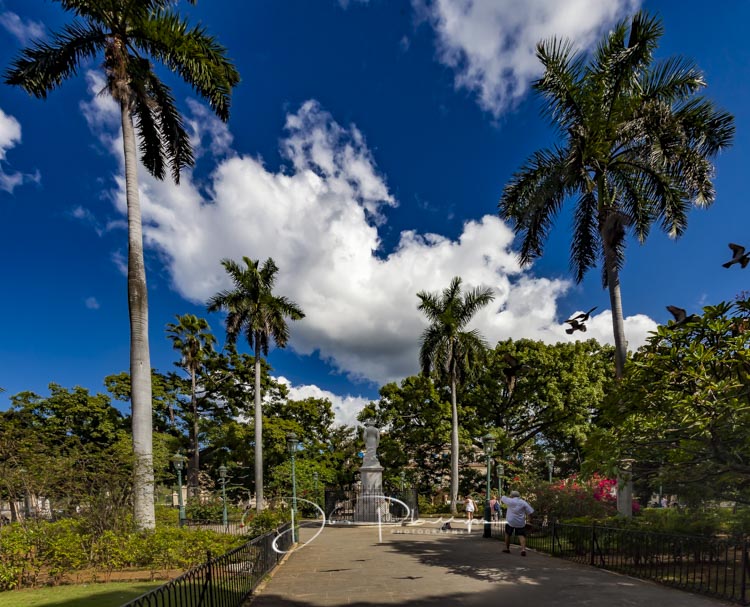 We cross back over the boulevard and walk back along the street fair on Paseo del Prado where we buy our obligatory art piece from an artist that, in our opinion, best represents Cuba. But we ask the artist to remove the canvas from the stretcher frame so we can transport it in our luggage and she does so happily.
