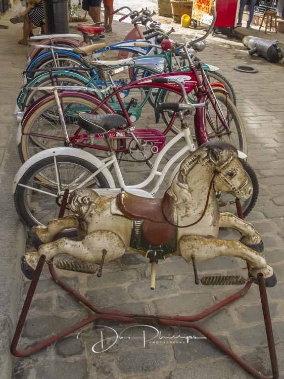 We spy a form of transportation that we have not, as of yet, ridden in and we approach them with the intent to get a ride. Alas, we are disappointed when we are quoted a higher price that even the Classic Cars charge! The miser in me comes out, especially after the outrageous breakfast and we decline the ride.