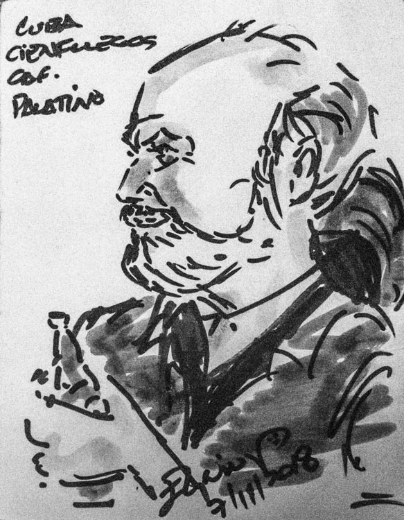 We arrive at our lodging, Hostal Siglo XV, and our new host, Hector Manuel, greets us and helps us get our luggage up to our second floor room. Well, no time to spare as we have a guided tour that starts in about half an hour and we’re hungry. So we head out to orient ourselves to find our tour and there is a great sandwich restaurant on the way. So we fill our bellies with food and another beer and Mojito for cool refreshment in the hot humid Cuban weather while listening to Caribbean Rock and Roll.