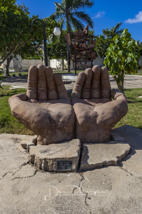 One thing we immediately notice is the cleanliness of the streets! Cubans pride themselves in cleanliness! I wish Americans would follow this example! We easily find the main square a couple blocks away and we locate the Museo de Arquitectura Colonial (Museum of Colonial Architecture) where we are scheduled to meet with the Director, Luda, for a personal tour arranged by our Cuban contact as a personal favor! Luda greets us warmly and takes us around the old city, describing all the old buildings and she takes us into several private buildings that only she has access to. How fun is this! We find art displays and pieces of interest galore. We spy something that we will see in many places in Cuba, street blockades to prevent large traffic and restrict the area to foot traffic only. They bury old cannons in the street! We even find a working sundial and pull our clocks out to find it is accurate!