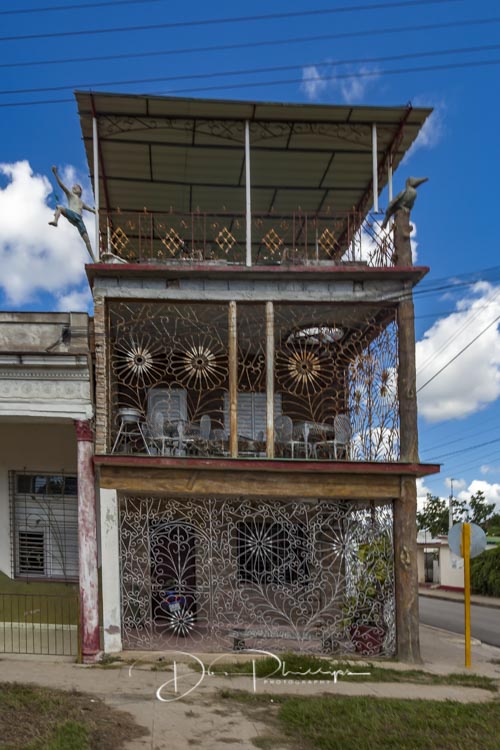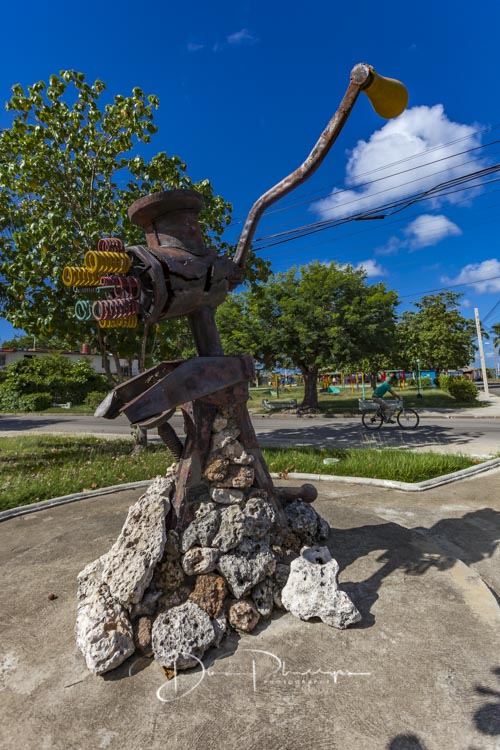 We continue on past a pirate statue, whatever that is there for, and find a colorful character playing guitar. We listen for a couple minutes, drop a Cuban Peso in his bucket and move on. Luda takes us up to a second floor private museum for some photo opportunities of this very colorful place. Then downstairs past an open air clothing store and a gift shop owned by a friend of hers. Of course, like most everybody we meet in this country, everyone needs to make a buck. I do spot a baseball cap that I lament not buying that celebrated who the Cubans think won the World Series!