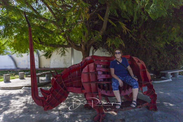 Oh well, many photos not taken, we bid ‘Adios’ to Luda and thank her profusely for her time, not to speak of paying her the agreed upon fee! Our money belts lighter, but our minds happier and more educated, we move along and find another location to imbibe in cool refreshment and reflect upon our good fortune. Remember that Pirate Statue I thought we saw? Turns out to be a live action model. I knew there was something up with that!