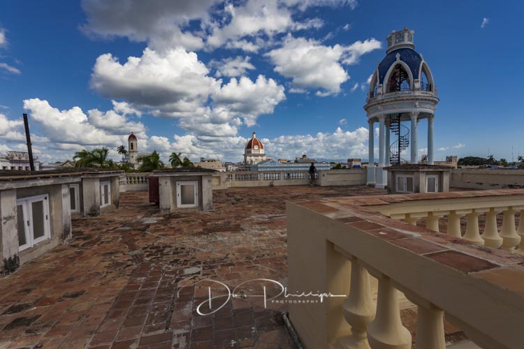 Okay, our time with Luda complete, it is now time for our next scheduled event, a salsa lesson with Baila Habana Dance School. Music and dance is an essential expression throughout Cuban life. We want to get caught up in this lifestyle and dance with the best teachers from Trinidad. Alas, we have only 20 minute until this lesson and it appears that we are at least 30 minutes from finding this location. Add to that we have been walking and tiring ourselves out with Luda and all we want right now is to sit and relax. So we skip this potentially exciting part of our scheduled day and go back to our Casa Particular for a brief respite from the weather where we crank the air conditioner that we again find in our bedroom. Feeling a bit refreshed, I take a few shots from the rooftop patio of what I can see from there! Notice the Blue Cisterns. The water systems in Cuba are all Cisterns. If you want running water, you’ll need a Cistern on your roof. We never did find out how the water gets up there, probably a low volume pump of some sort.