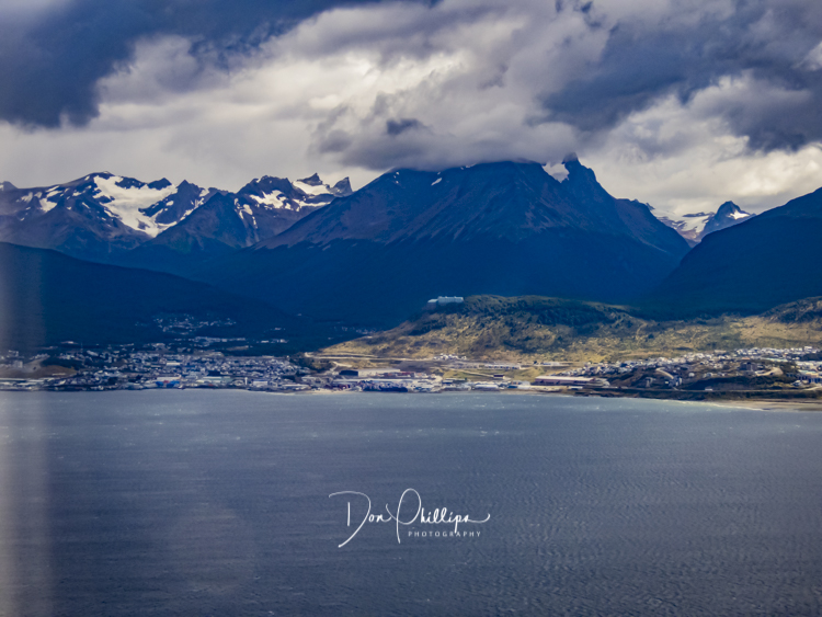 We make our way down to the Port and buy tickets for the City Tour bus but we discover that acquiring Argentinean Pesos will be to our advantage. It seems that the few chances we have had to spend money in Argentina, everyone takes US Dollars and is happy to do so. I’ve discovered why, it’s because the exchange rate that small vendors charge is much higher than the actual value. So after we get our Tour Tickets, we seek out a Cambio (Money Exchange) and we find one a couple blocks away and we arm ourselves with Pesos. We walk back to the Tour Bus with the pipe dream of getting a front row seat but it is not to be had because we were not willing to sit in the bus for an hour and we needed time to get Pesos anyway. We watch a small plane make its way lazily into the local airport and take a scant few photos of town, even getting a glimpse of our Expedition Ship that has arrived in Port!