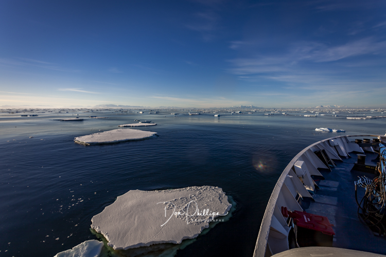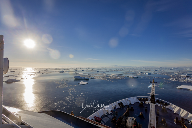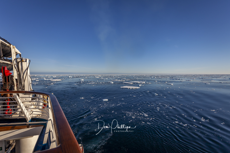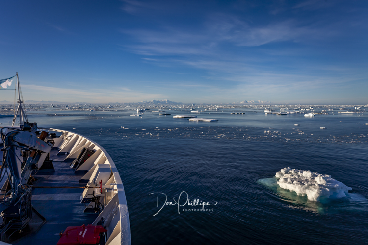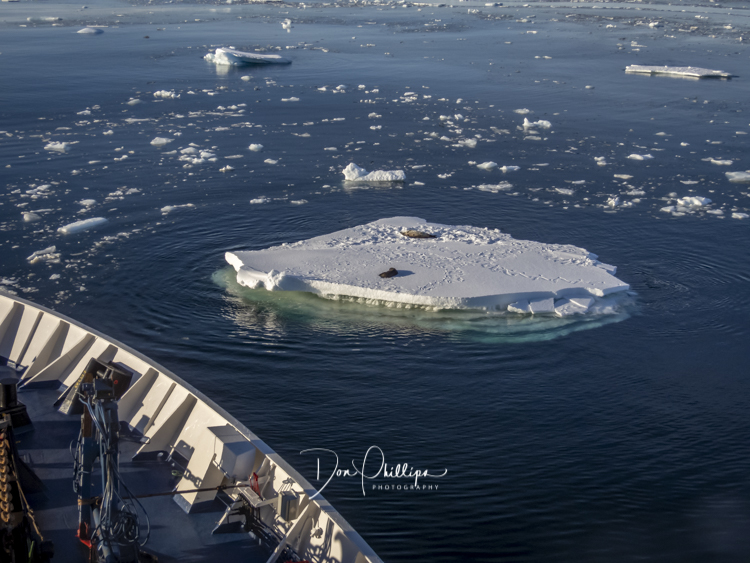Everywhere in front of us are ice flows and bergs of all different sizes and the crew makes it look like child’s play as they navigate through them. Our cameras snap happily away and we spot several seals and other wildlife among the flows and bergs.