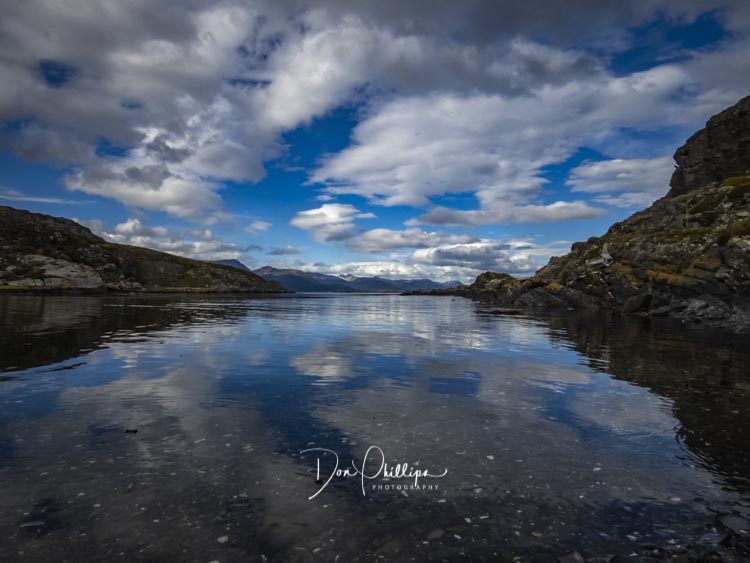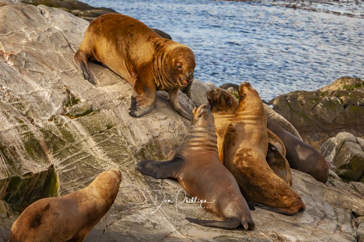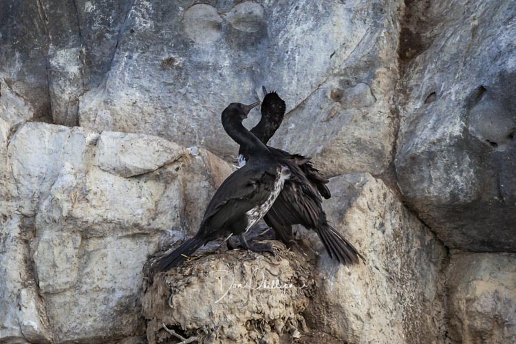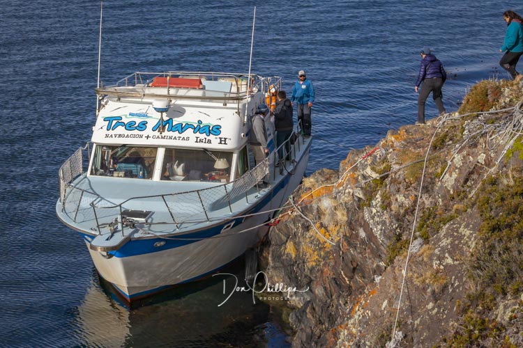 The boat first takes us to an island where we get off the boat and take a guided hike around to see wildlife up close and personal. It is great weather with partly cloudy skies that give depth to our camera lenses and all are happy! We get back on the boat, which is a challenge in itself as we have to navigate somewhat off a cliff and rocks to step onto the boat.