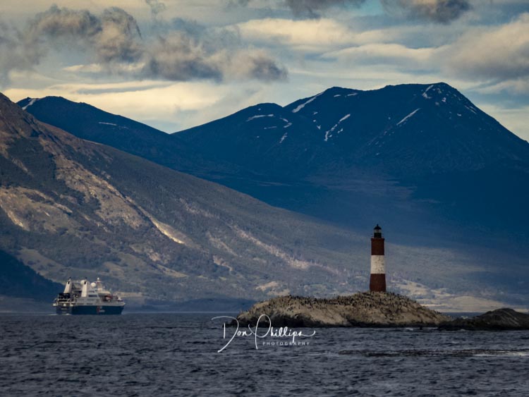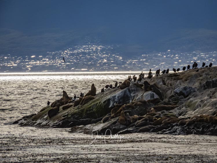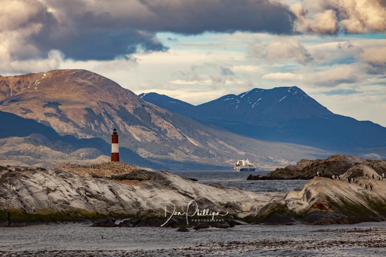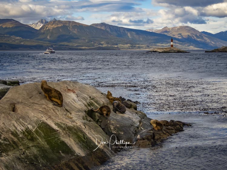 We have time before we go to the airport, so we book a trip out to the famous lighthouse here. A small boat carrying about 10 people takes us out and we watch all kinds of birds and creatures on the way. We even see the Ocean Diamond as it leaves out of the Beagle Channel with a new group of passengers on its last sailing to the Antarctic for the season. Fur Seals abound on the rocks of these islands and the boat brings us in for close and personal views.