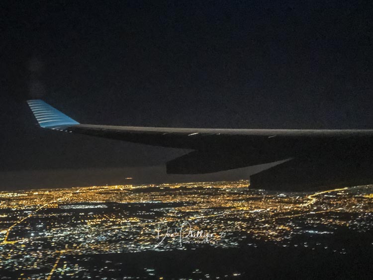 More conversations with other passengers ensue as we wait for our delayed flight. But at least this time, we don’t have to change planes so our luggage should arrive when we do. We do have 2 stops on the route, but the same plane and we are not concerned. Just for ‘shits n giggles’, we did check for our lost luggage but it is not here. So at least we don’t have to haul 4 bags around the airport!