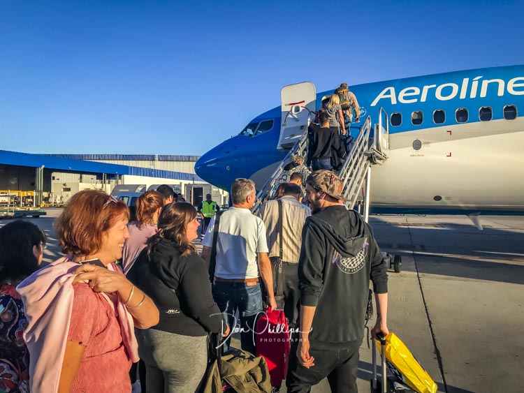 Okay, our plane has arrived and we go through security and board. We have a 2 hour and 30 minute flight to Bahia Blanco which I find interesting that it translates to “White Bay” but this place is very much inland in Argentina! We are only delayed 45 minutes at this point. Our flight was scheduled to take off at 2:45 PM and it is 3:30 and we are taking off. 6:00 PM and we land in Bahia Blanco and are on the ground for about 40 minutes before taking off again to our next stop.