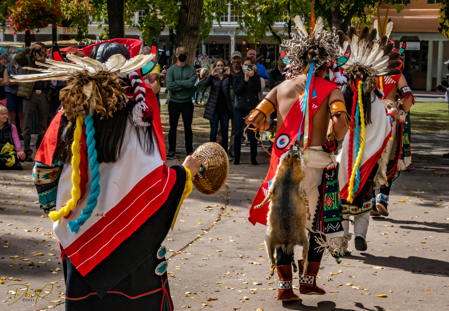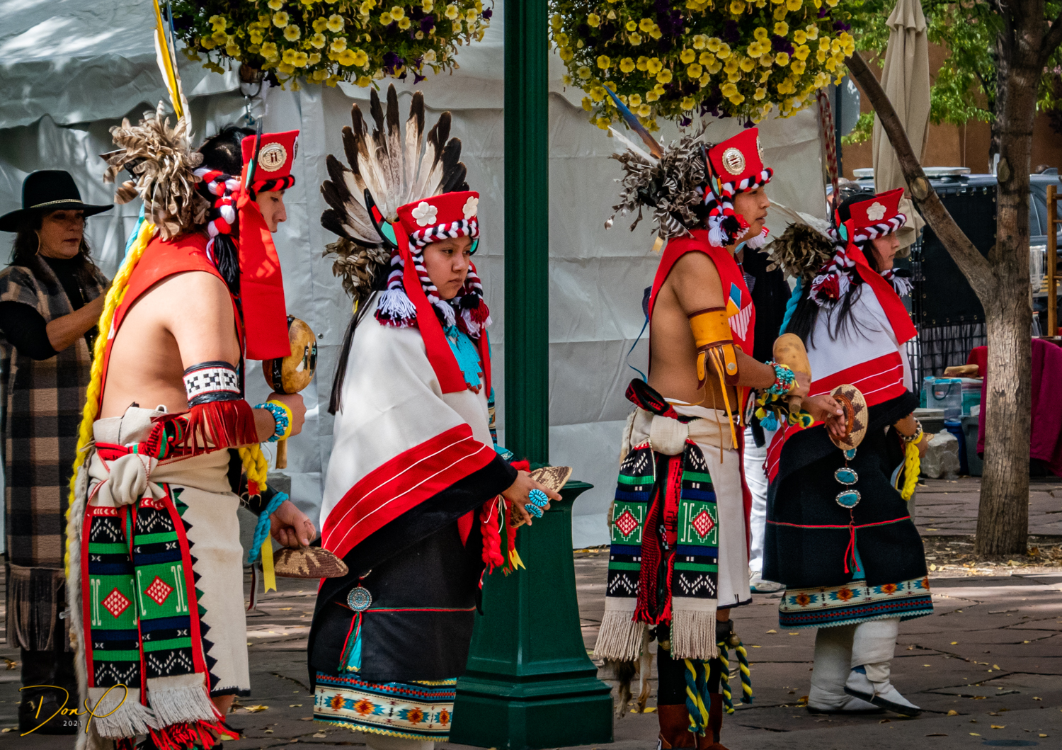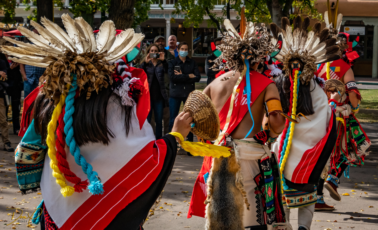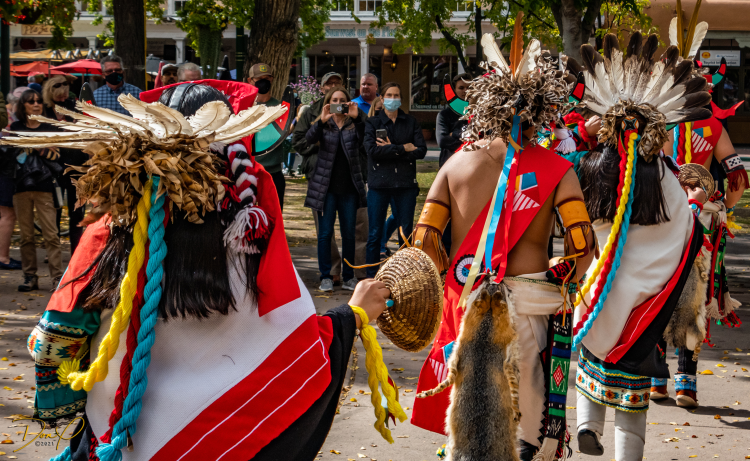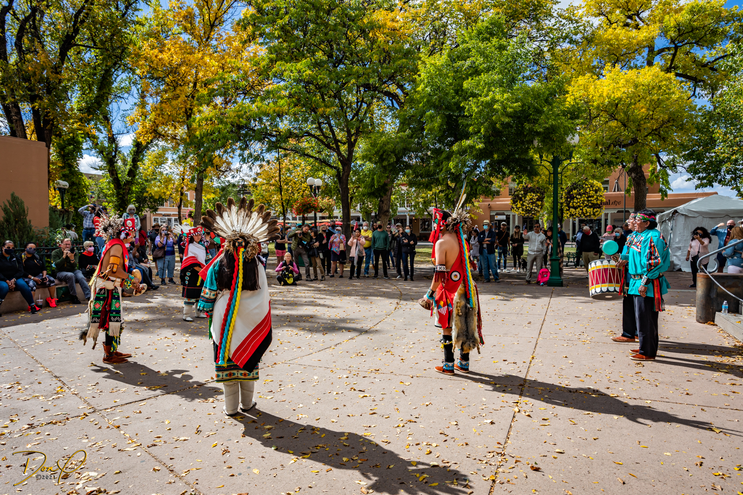 We find ourselves only a couple blocks from the main Plaza in Santa Fe and we park the car and wander around the art displays. Some local Indians are putting on a Music and Dance Display. Jewelry Vendors abound. We find a Painter’s display and look for potential wall art for our home but nothing reaches out and grabs us.