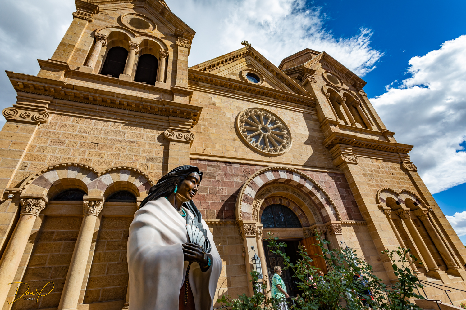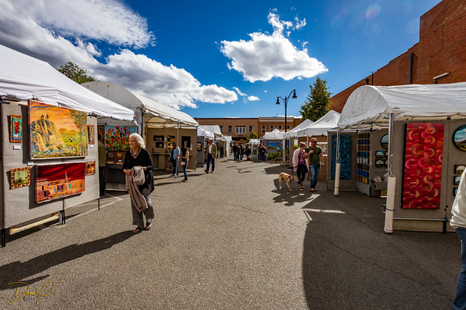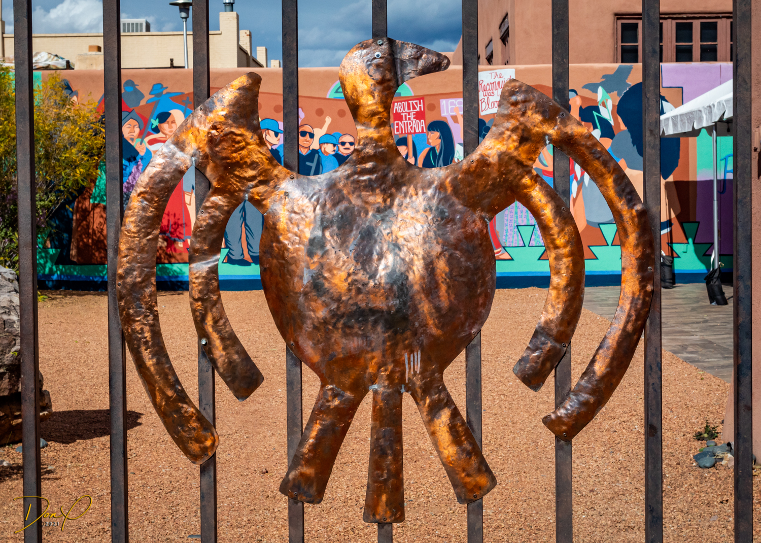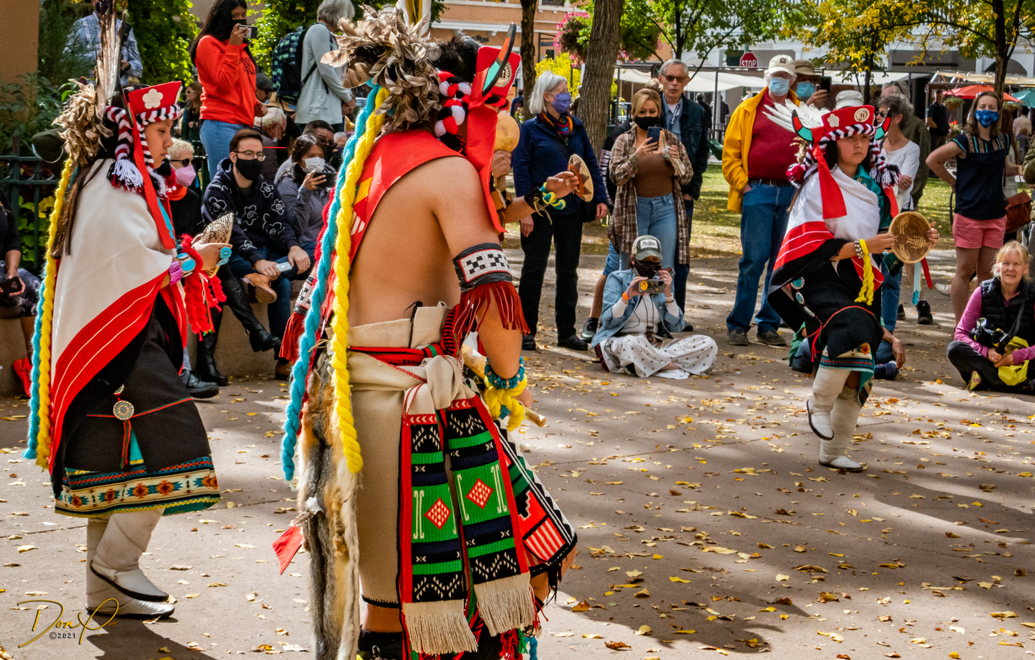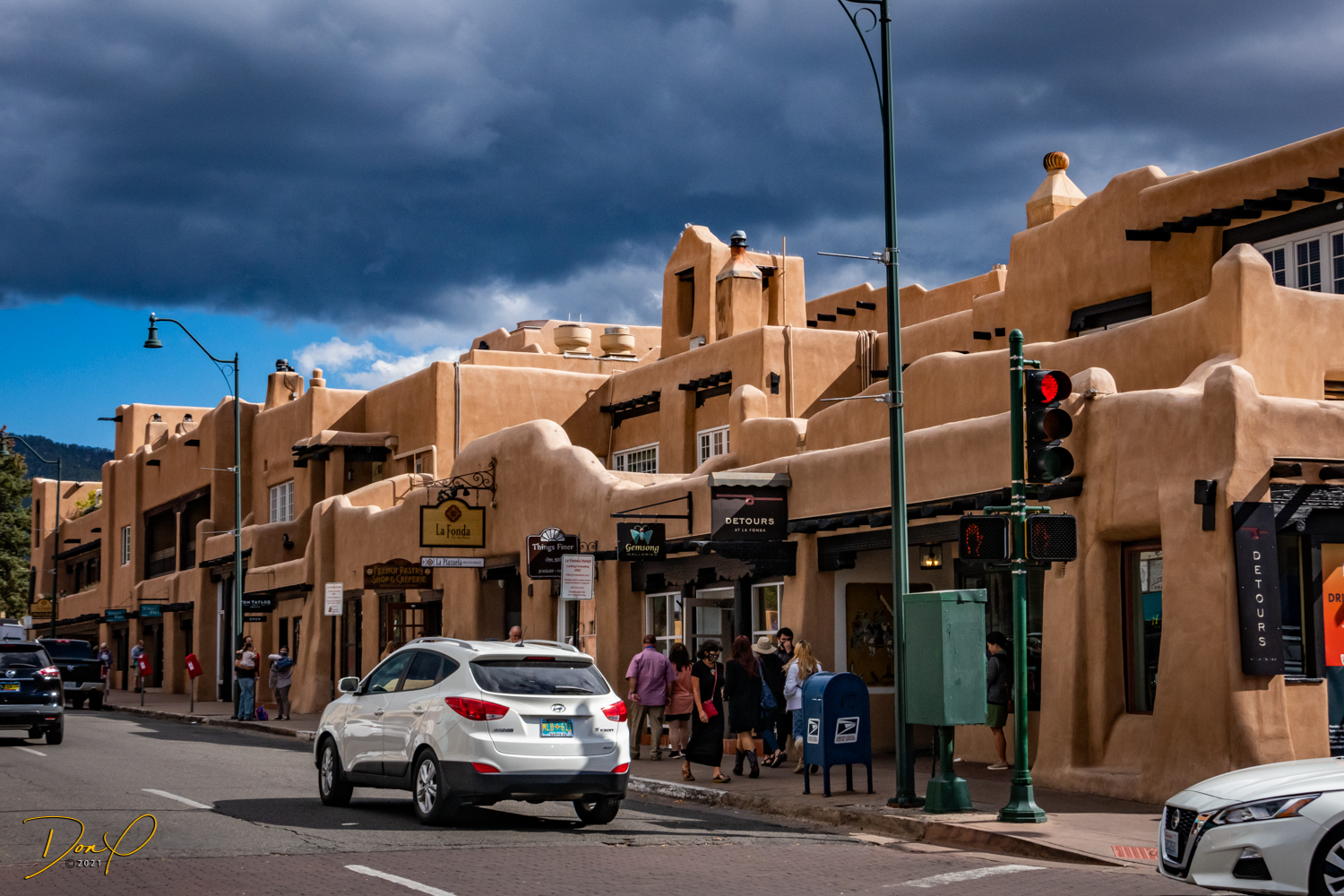 We find ourselves only a couple blocks from the main Plaza in Santa Fe and we park the car and wander around the art displays. Some local Indians are putting on a Music and Dance Display. Jewelry Vendors abound. We find a Painter’s display and look for potential wall art for our home but nothing reaches out and grabs us.