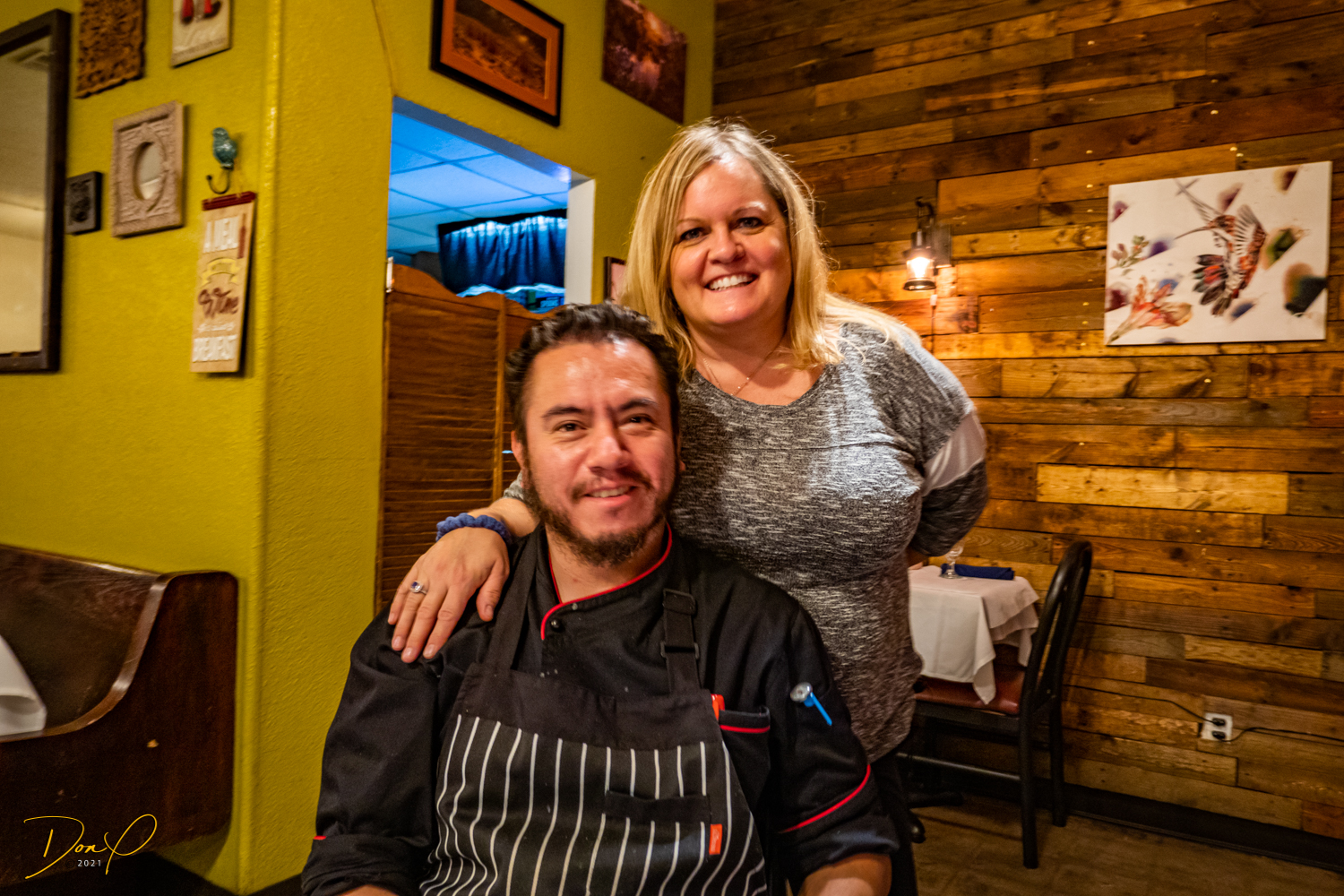 It turns out we have chosen to have dinner at “Seared Bistro”, a restaurant in Old Town Albuquerque that has struggled through Covid and has survived! The restaurant is owned and operated by Jan Tenchipe and her husband (the Chef), Alejandro Tenchipe! We are here on their 6th Wedding Anniversary and they are working their asses off to provide for their clientele!