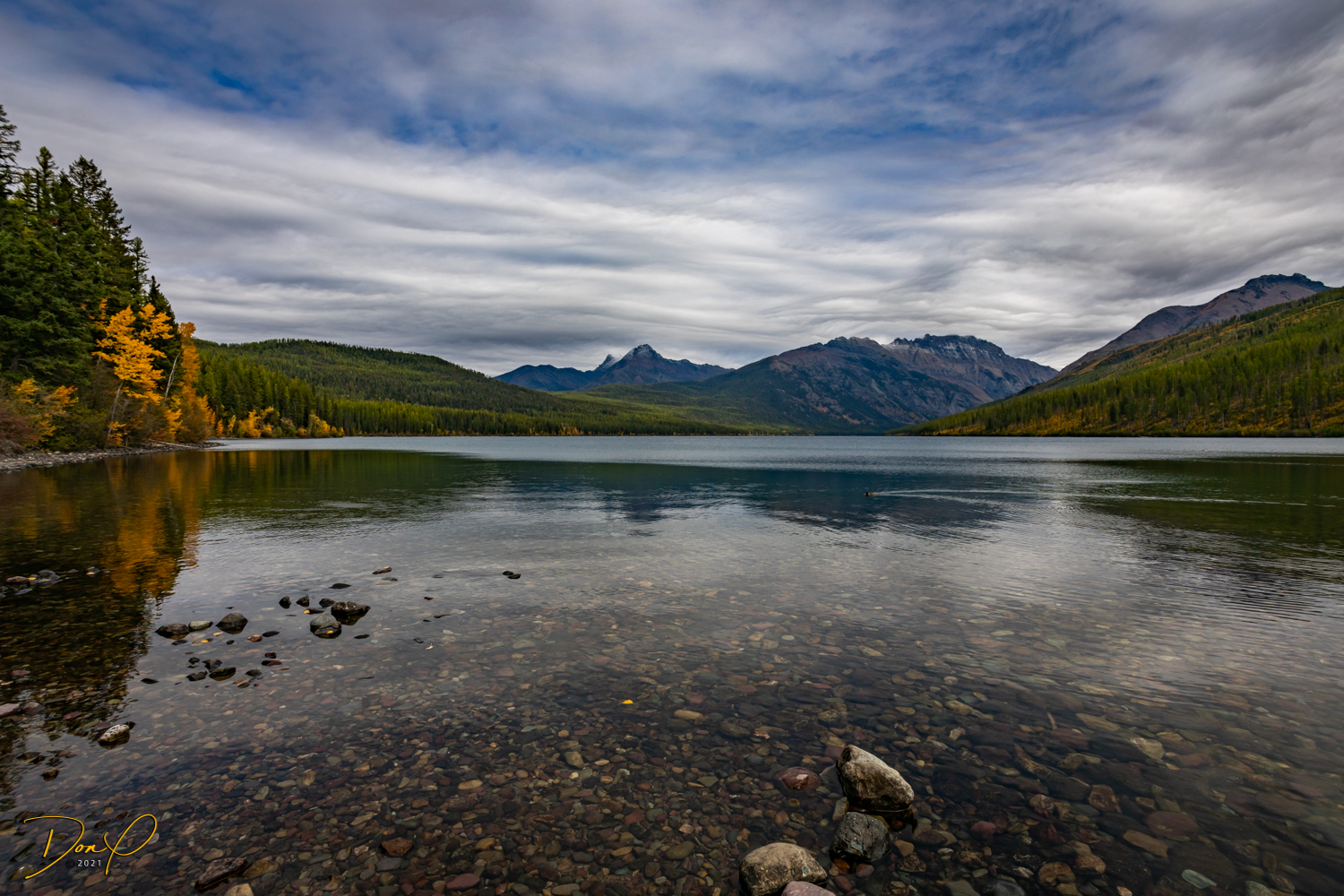 We stop at the Mercantile and pick up some unique items, such as Huckleberry BBQ Sauce and I try some delicious Potato-Bacon Soup. After a brief stop, we embark on a very rough dirt road to try to see Kintla Lake. Luckily for us, the rough road only goes for a mile and a half. Then we turn left onto the “Inner Road” and drive 15 miles to get to the Lake. A very pretty lake surrounded by stunning mountain vistas and we hike around the area for a half hour or so.