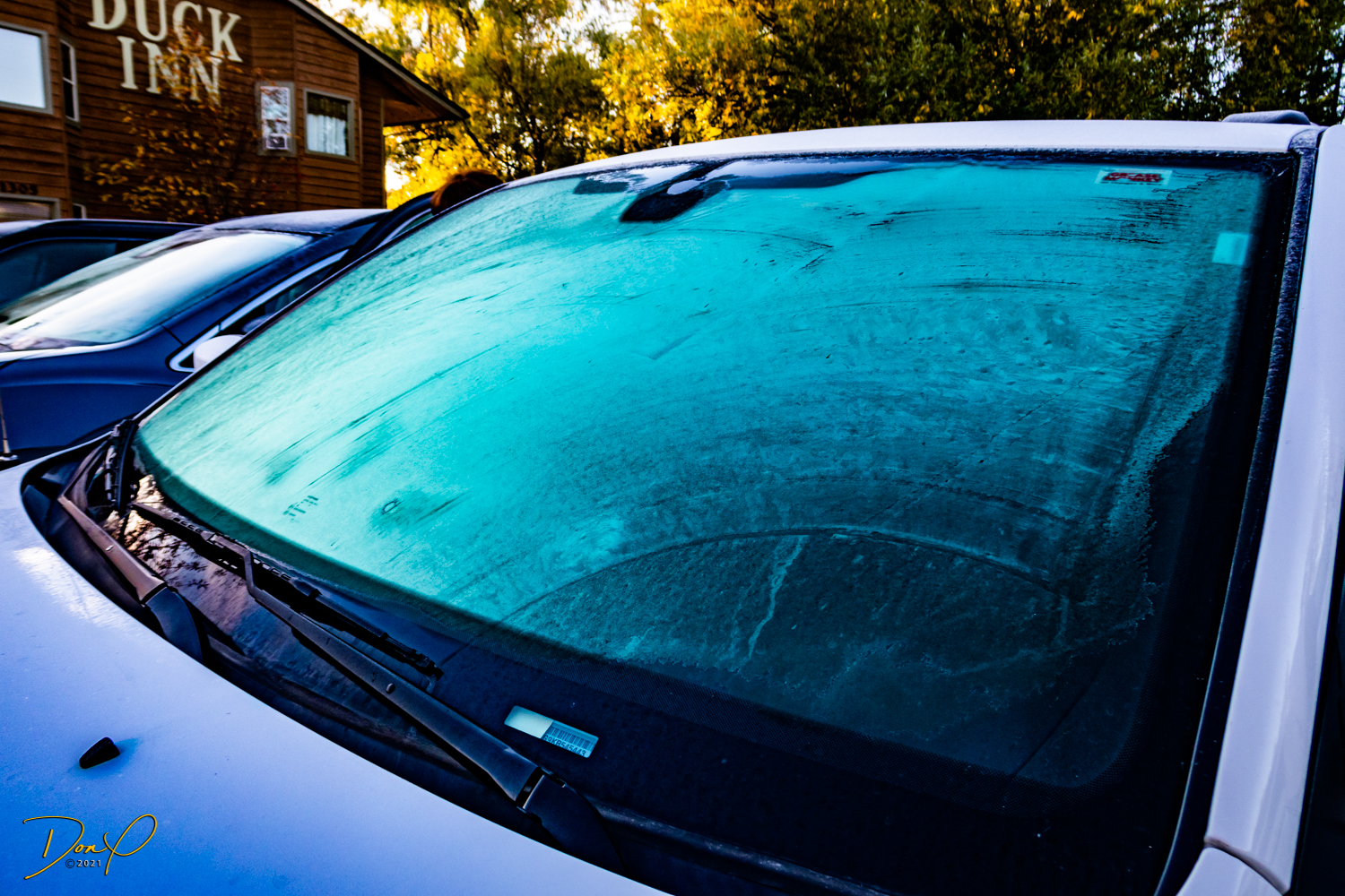 This morning we are both tired and we sleep in for an extra hour and arise at 7AM. We have another wonderful breakfast and pack up and head out to see the West Side of Glacier NP. We’re not in California anymore as we find the windshield of the car frozen and a frost on the ground!