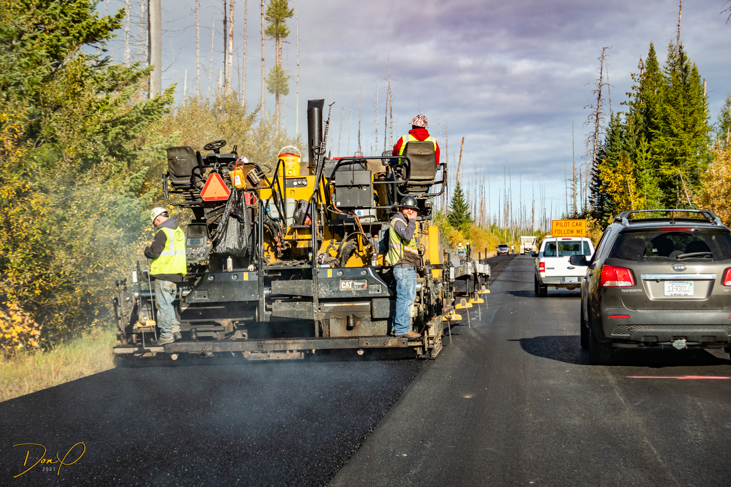 We drive again to the West Entrance only today we turn left and drive along Camas Road heading towards the Outside North Fork Road. A brief delay for road construction and we are on our way.