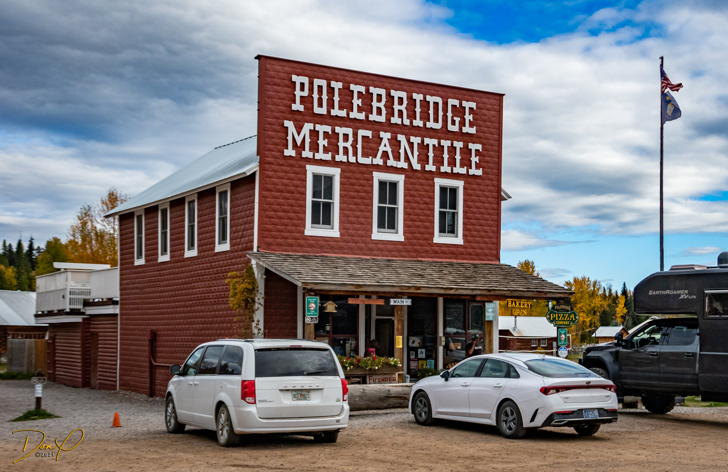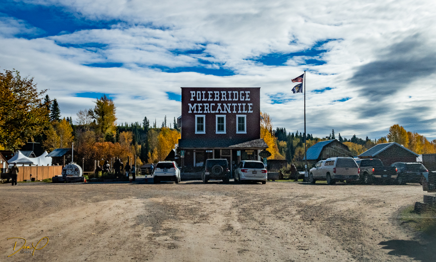 We drive along the North Fork Road, which turns out to be a smooth dirt road for the most part, stopping occasionally for photos ops until we arrive in Polebridge. Then we turn right and head a half mile to the tiny town. We come to a “T” in the road where if we were to drive straight, we would run into the Polebridge Mercantile.