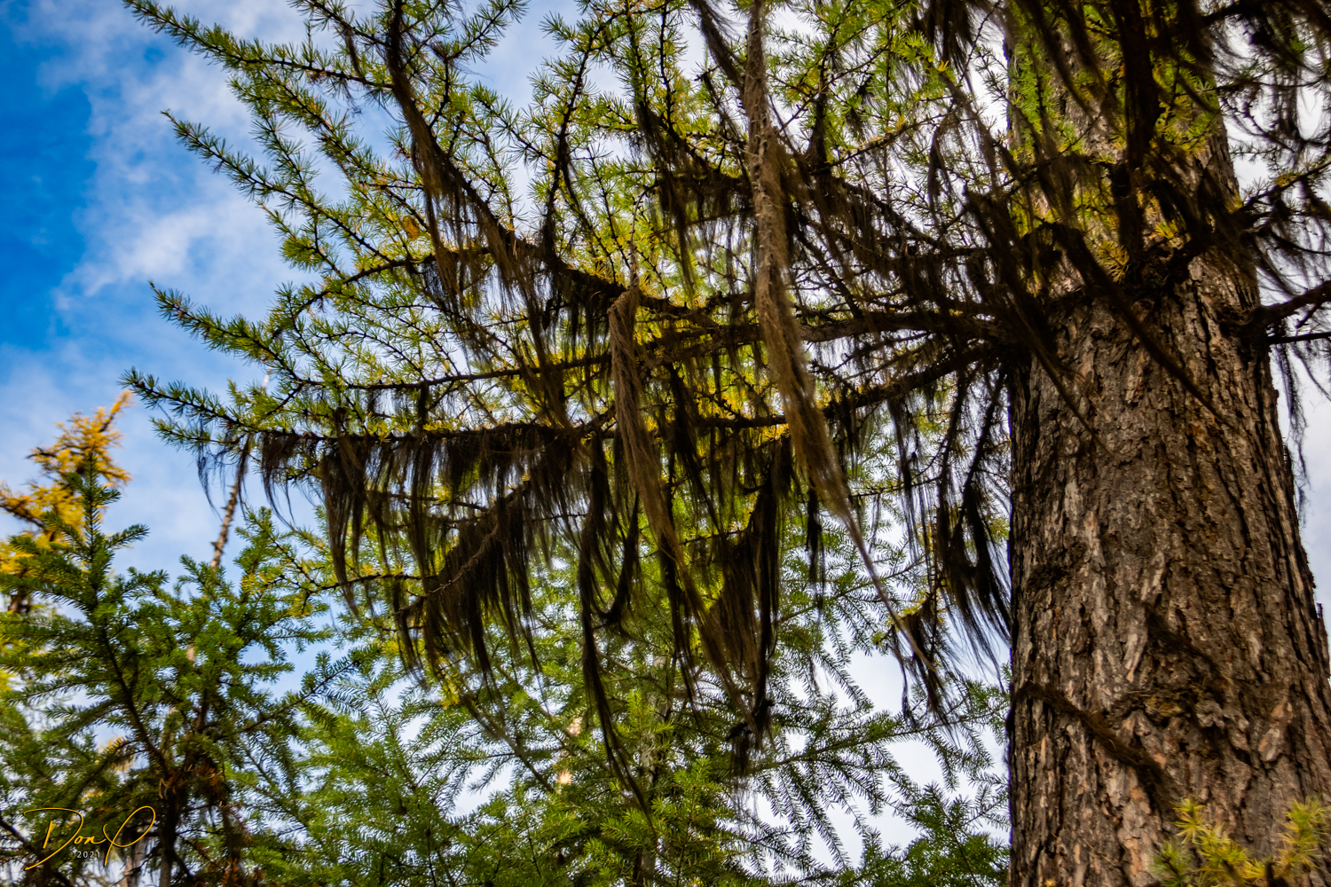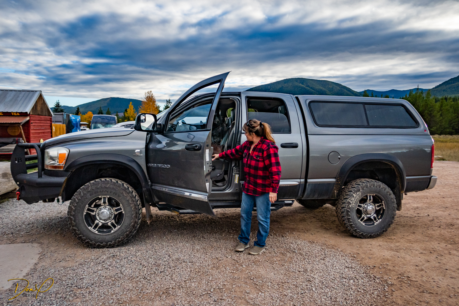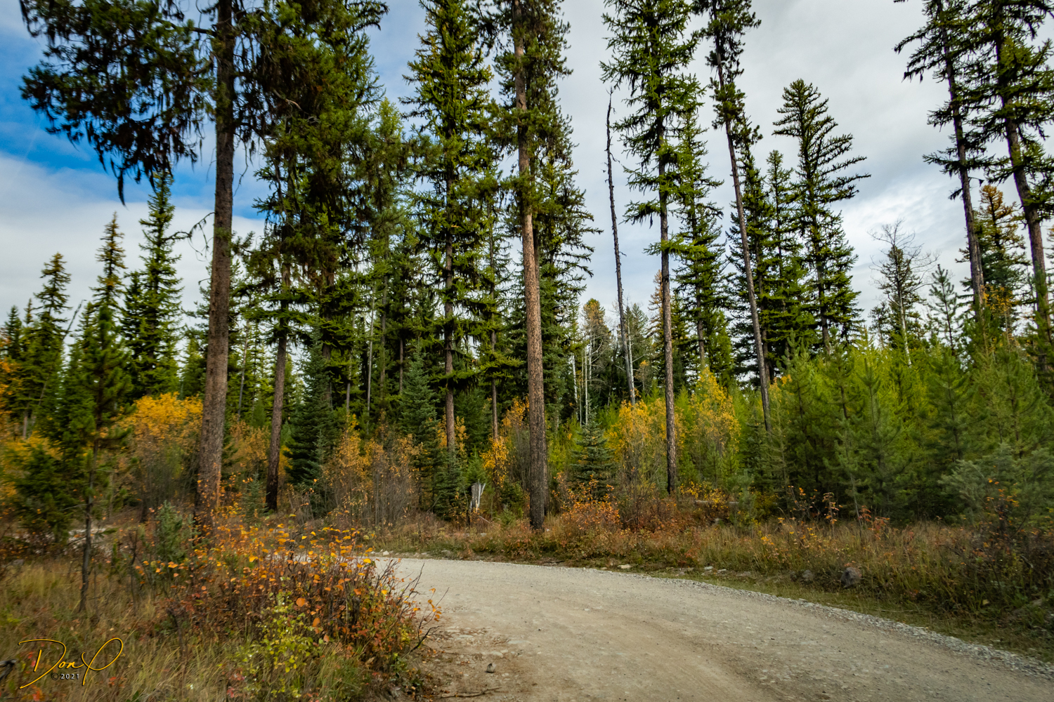 We have decided we want to get back on the North Fork Road and try to get to the Canadian Border which isn’t far away. So we head back to Polebridge where we can get back to the Fork Road. A half mile from Polebridge, the tire pressure indicator on the dash signals a low tire. We get back to the Mercantile and stop. Our right rear tire has gone somewhat flat. The Mercantile has a pump that we use in vain to pump up the tire. We find a tire repair kit in on van that not only inflates the tire, but sprays a tire sealant in to insure the fix.