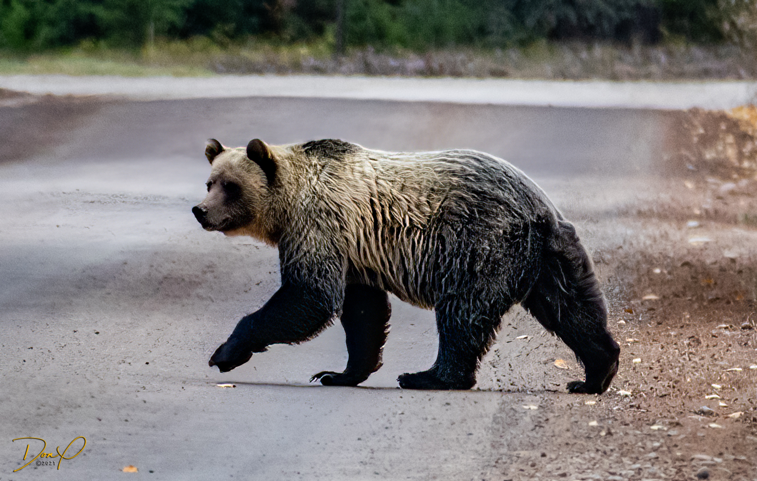 But I have to digress here and think that, “Everything Happens For A Reason!” For after a couple hours of being stranded, someone walks up and says, “Hey, there’s a Grizzly over there!”. We all look, and sure enough, there’s a Grizzly Bear across the Meadow! My first thought? RUN!!!… Nope! My first thought (you guessed it!) “Get the damn Camera!” So I did and you can see what I saw! So maybe getting stranded here was for a reason, after all!