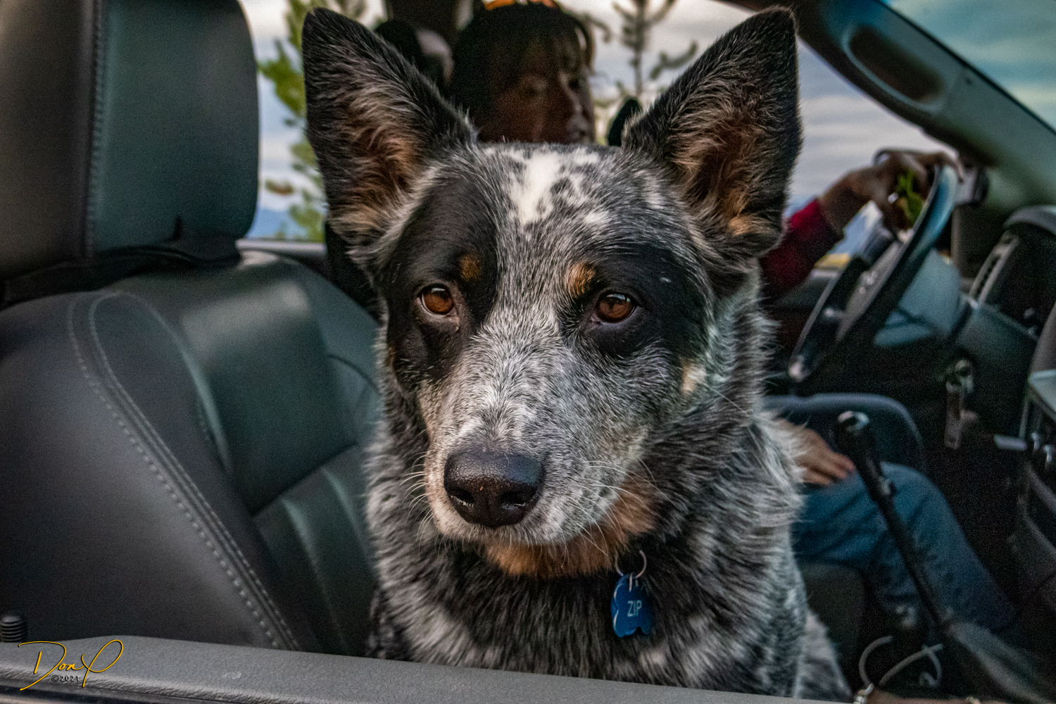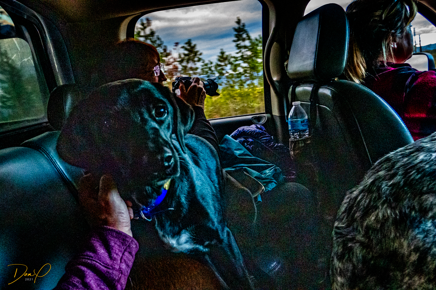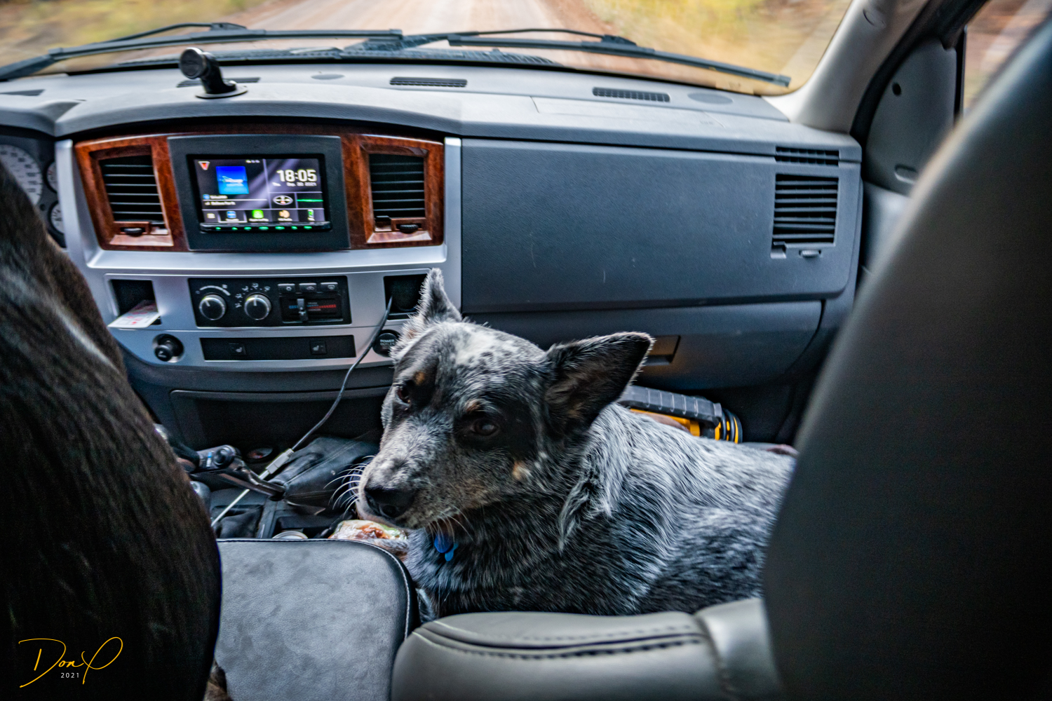 So we happily accept Sue’s offer of a ride and we join her with her four friendly dogs! The oldest dog, Rambo, an 11 year old Chocolate Lab, loves to sit in the back seat with us and is totally happy to lay his head in your lap and loves to be petted! Rambo’s best friend, Gunner, is the youngest and loves to sit in your lap! Then there are Sue’s two Healers, Trigger and Zip whom pretty much stayed up front with their Master but were curious and appreciative of back and head scratches!