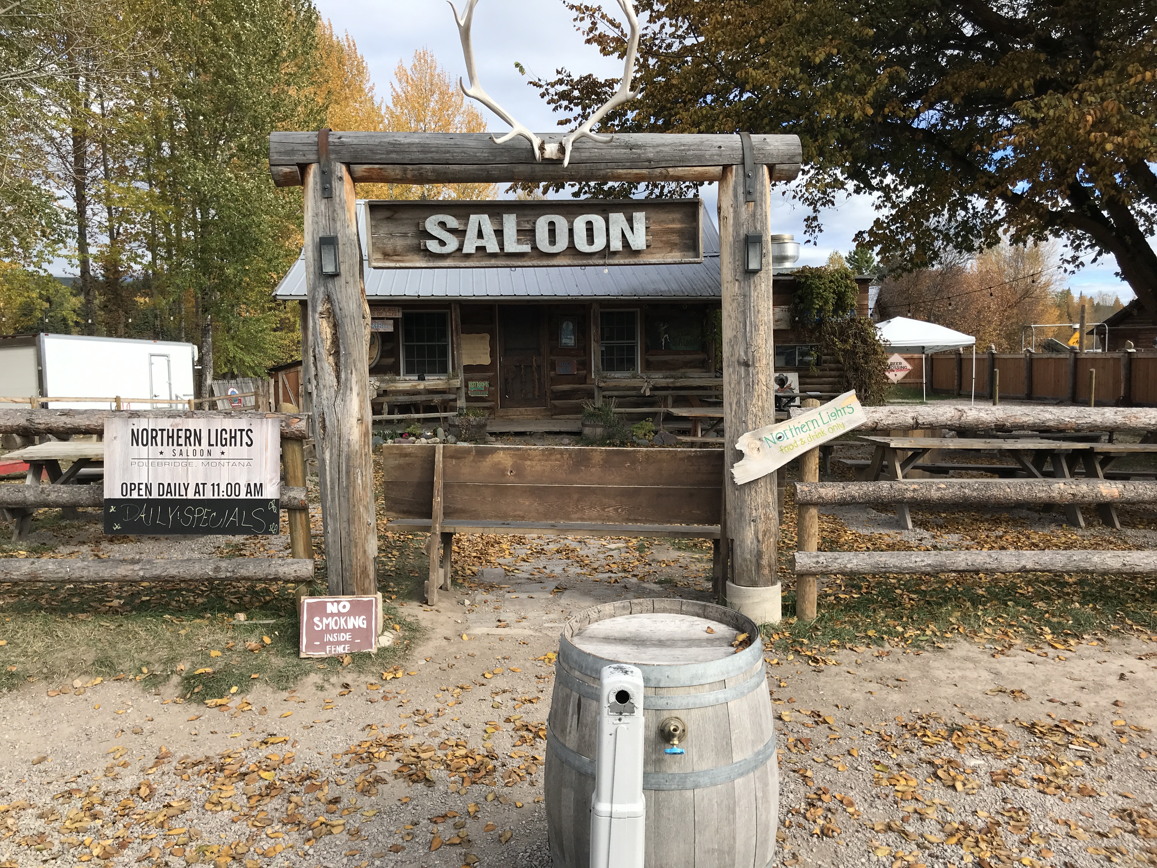 Another nightmare of calls that last almost 45 minutes and we are not convinced that we are going to be rescued! There also is no spare tire included with the rental car! The wonderful people working in the Mercantile try to help us, but the bottom line is we need to get back to Whitefish and Kalispell (Airport where the Rental Company is). So we also chat with some other friendly visitors to Polebridge. And at least there’s a saloon here, LOL!