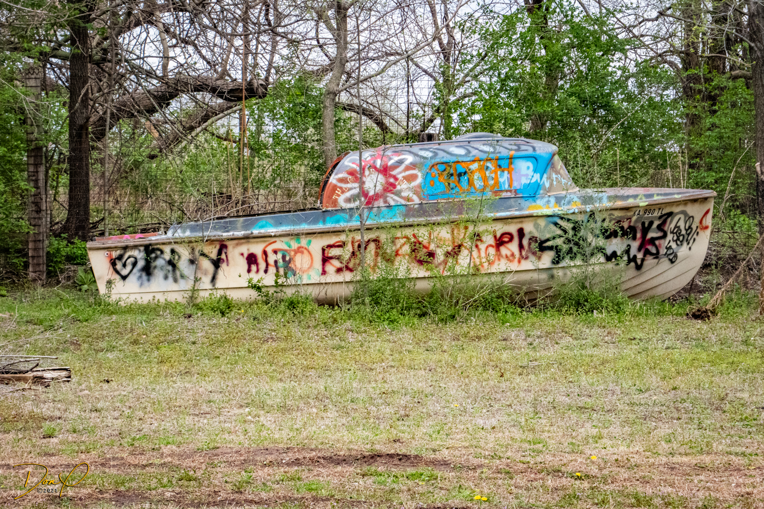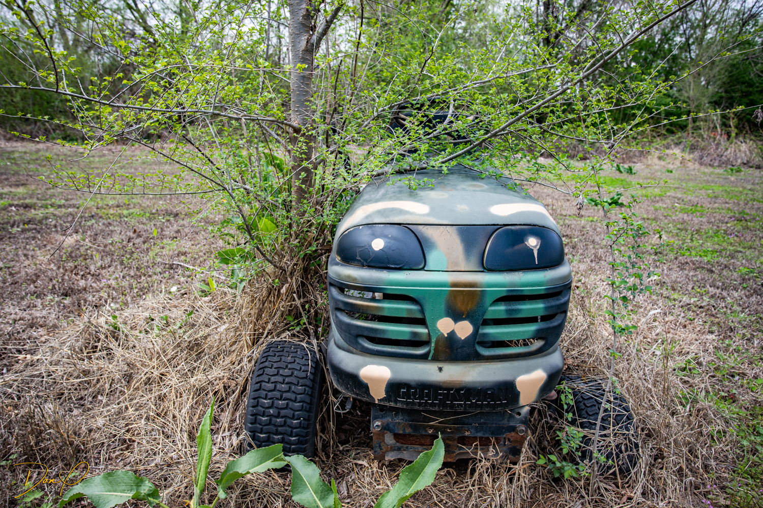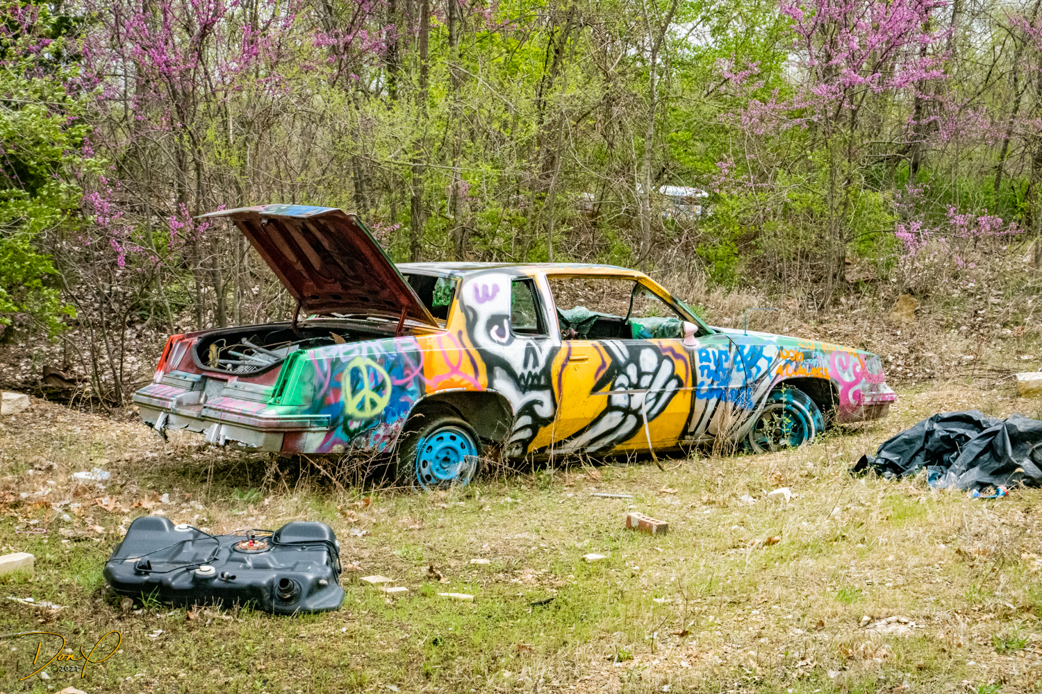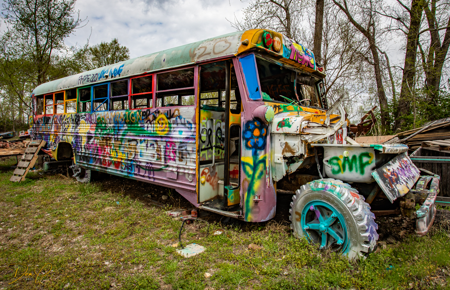 Now we have lost almost 3 hours that we thought we’d be driving but we try to keep to our plan. We have spotted a place called “Truckhenge” that has peaked our interest and it is just over an hour from us in Topeka. We arrive there and we have to drive by car and truck junkyards and construction sites. Wow, this is becoming comical! But we come across this derelict property but recognize this must be the place as we see trucks sticking out of the ground!