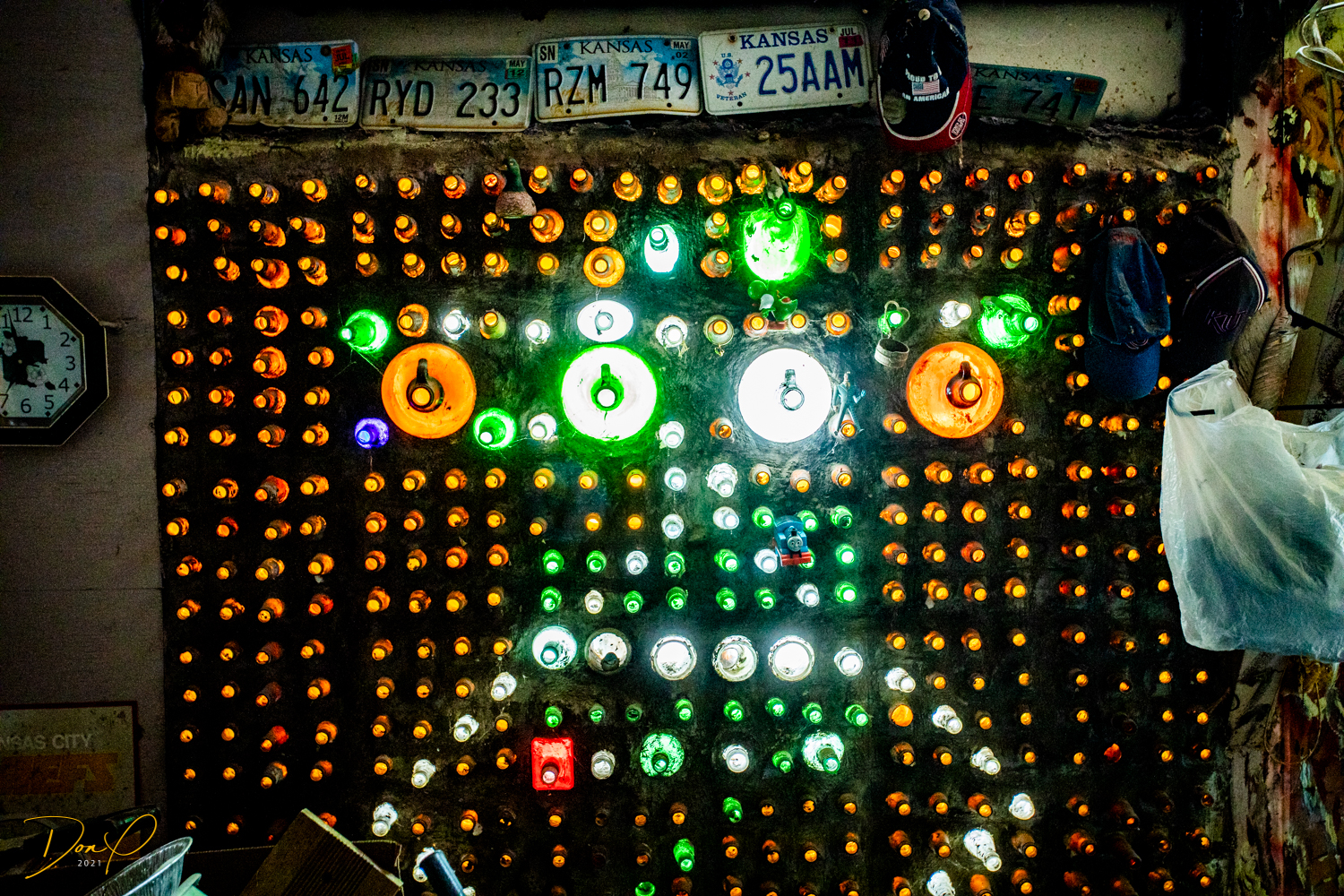 We take a few more photos of his “Bottle Walls” and bid him adieu. He lastly shows us a beat up rail car that is literally full of bones. Bones from ancient animals and not so ancient animals. We drive away and gas up the RV to the tune of $125 for 46 gallons of gas. We were at 1/4 tank so I guess it is a 60 gallon tank (225 Liters for my friends across the pond!) Bank account appropriately drained, we drive on west through Kansas.