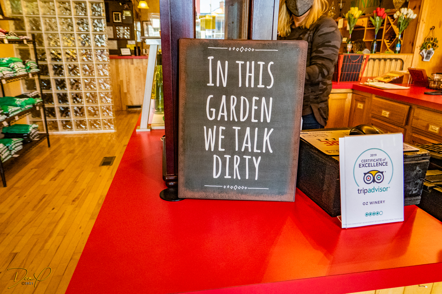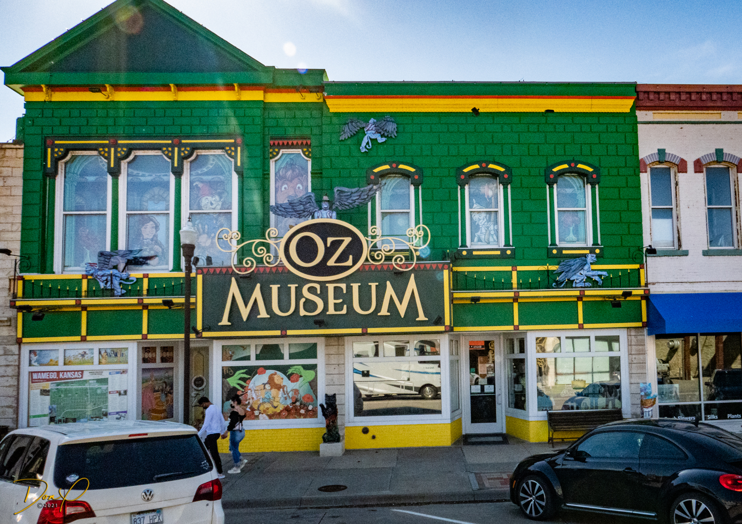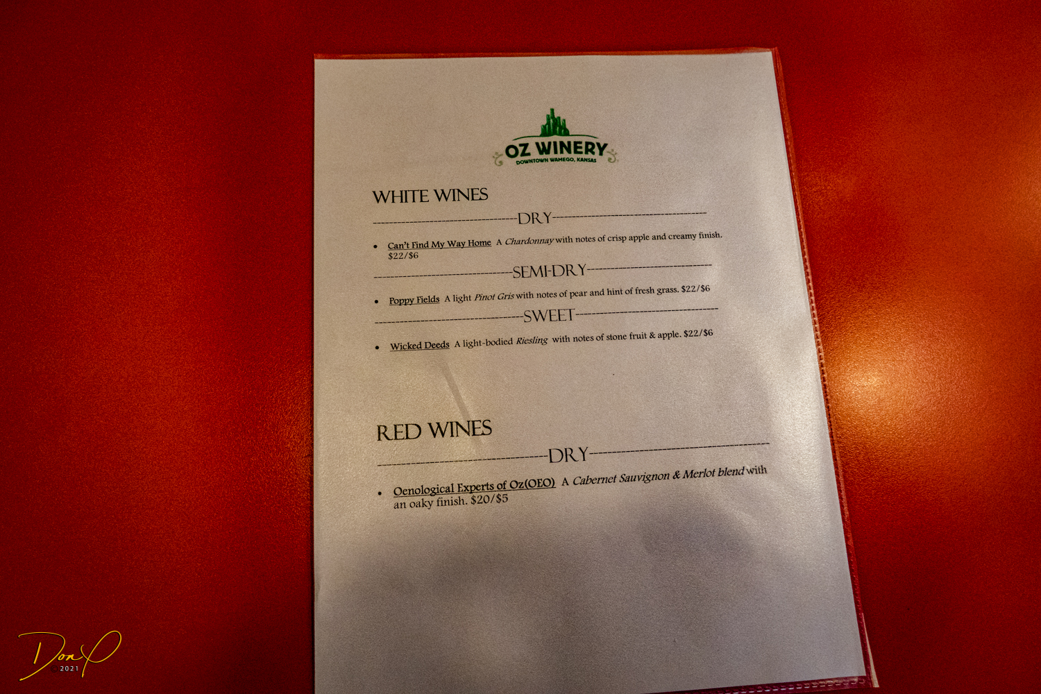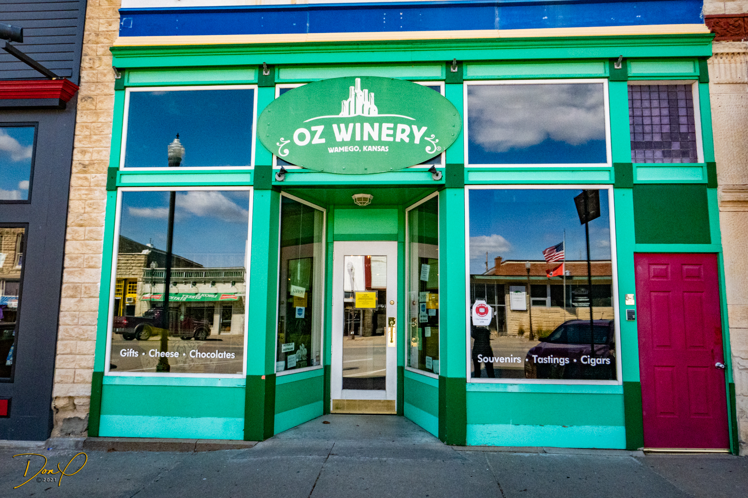 As we drive, we keep seeing billboards for “OZ Winery” in “Wamego”, Kansas. Since the Wizard of Oz had a basis in Kansas, we are intrigued and turn off the highway to find this magical place! It turns out to be a 20 minute drive off the highway which we almost turn back around because it seems to be taking too much time out of our abbreviated allotment for the day. But we keep on and find the little magical town of Wamego and quickly spot the Oz Winery.
