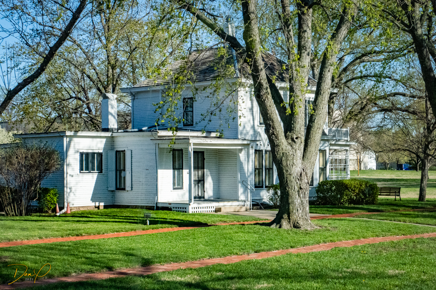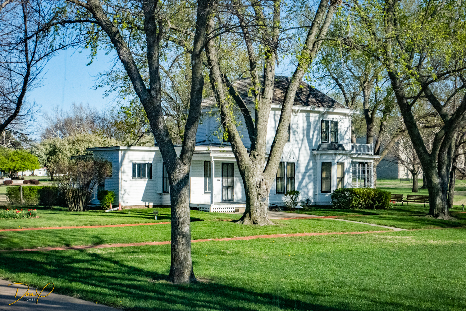 We then head back on the road and go west again. An hour later we come across Abilene, Kansas. Making fun of the name, we sing, “mAbilene, why can’t you be true?” But to be honest, we are intrigued at what Abilene has to offer so we pull off the highway and check it out. We discover this is the place where Dwight D Eisenhower grew up. His Presidential Library and Boyhood Home is here. Too bad it is closed today. But we drive around it and take some photos.