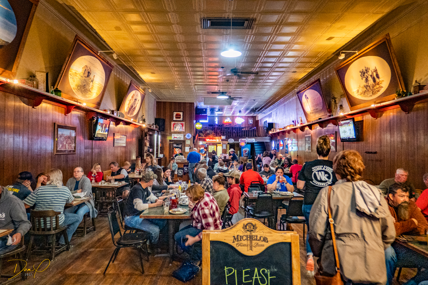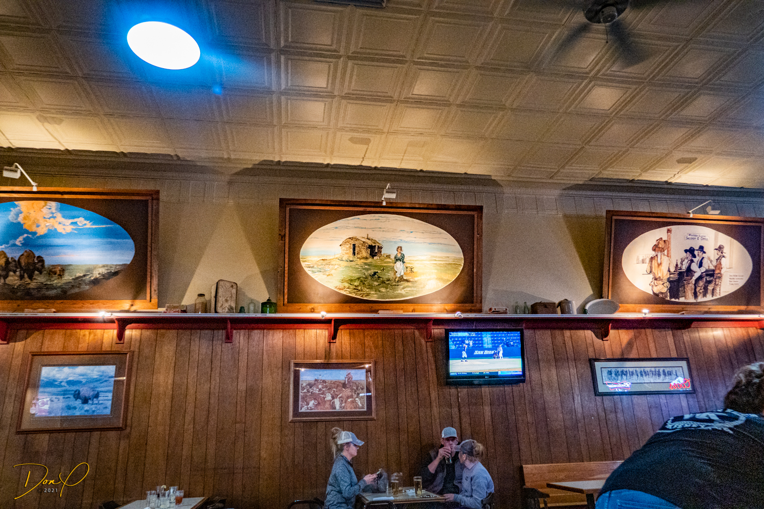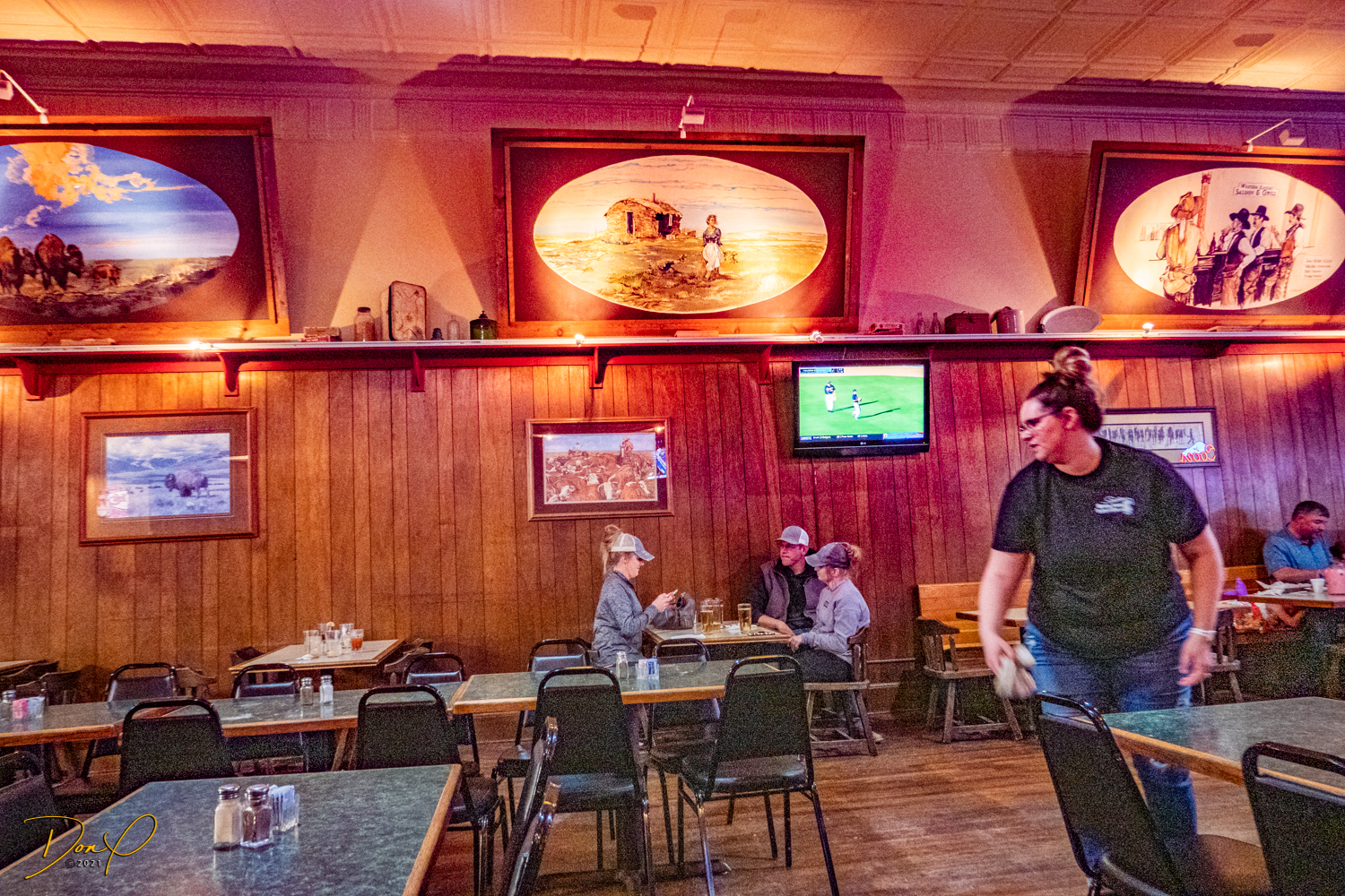 We drive on towards Wakeeney, Kansas, out destination for the night. We arrive at sunset and check into our spot in a KOA Campground. Then we head out to find dinner at a restaurant Elee found earlier, named, “Western Kansas Saloon & Grill”. What an appropriate name for a steak house in Western Kansas! Turns out we are waited on by the owner herself! What a sweet lady, Jacinda! (I apologize for the horrible lighting on your face Jacinda!) She is old enough to easily be our daughter! We converse and kibitz with her and she serves us a marvelous dinner of Kansas Strip Steak and Prime Rib! Life is good! They tell a story of olden days where gambling was done in the basement! There was a small hole in the floor where someone would drop a walnut into the basement whenever the Law walked in as a reminder to pack up the gambling! If you ever make it to Wakeeney, Kansas, this should be the top of your list for dinner!