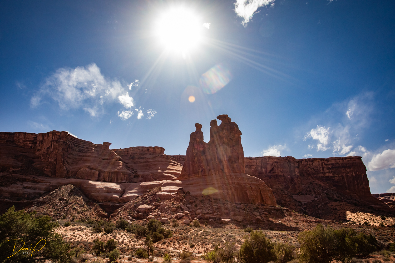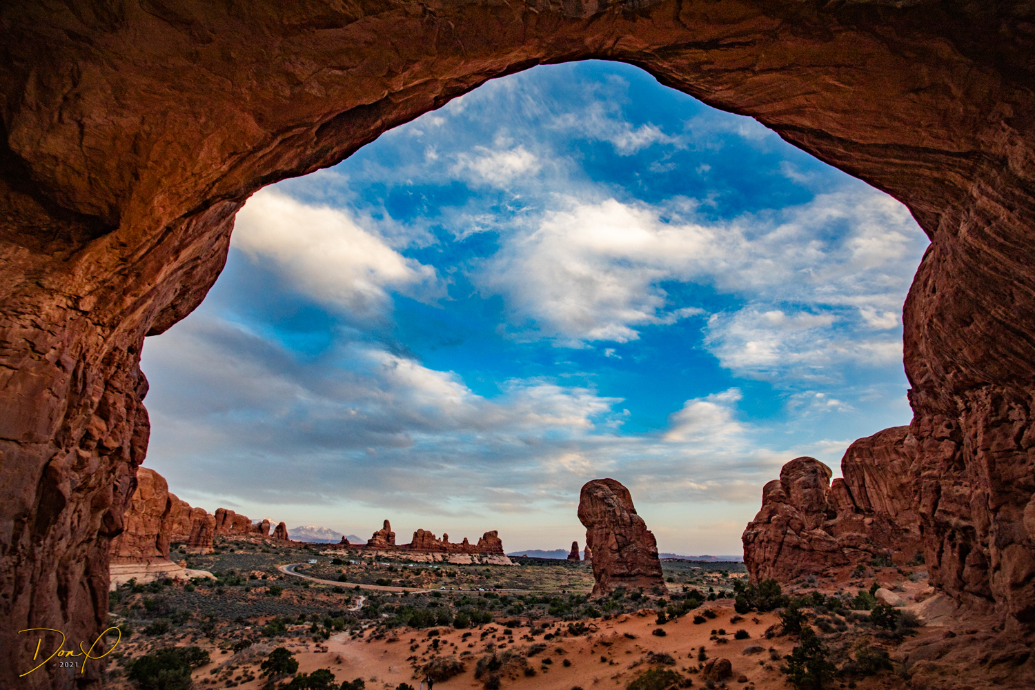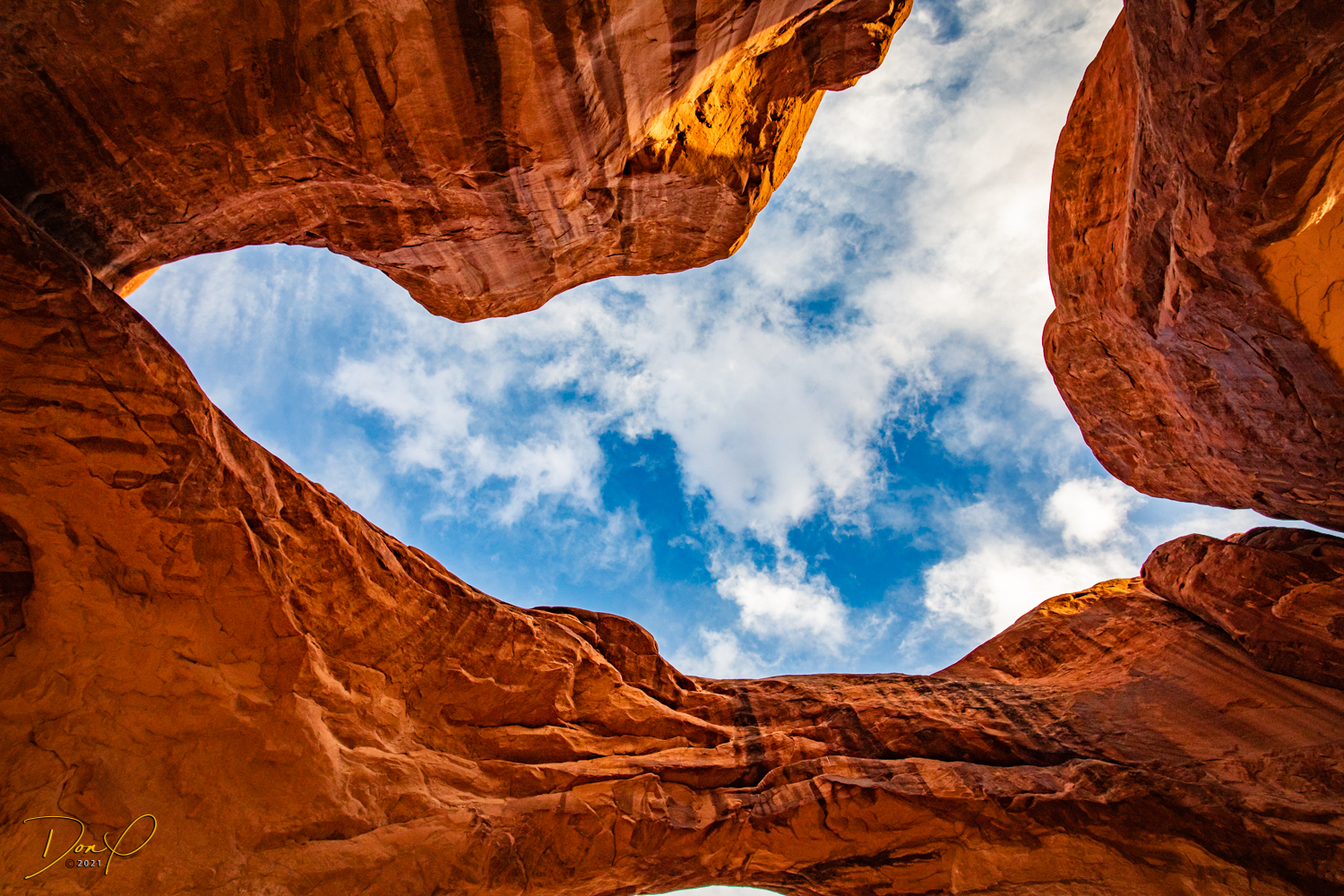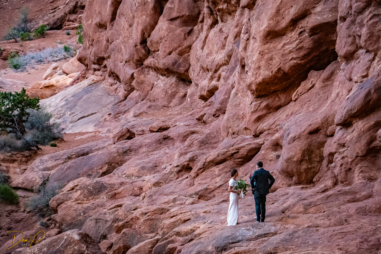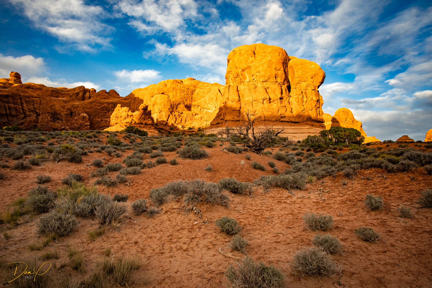We photograph the area and get back in the RV. It is late afternoon and we leave the Park and head into Moab, just a few miles down the road. We find Moab Brewery and have an early dinner. Then we head back into Arches to try to catch a sunset. We stop at Window Arches and Double Arch and get some successful sunset shots along with what appears to be a Wedding Shoot!