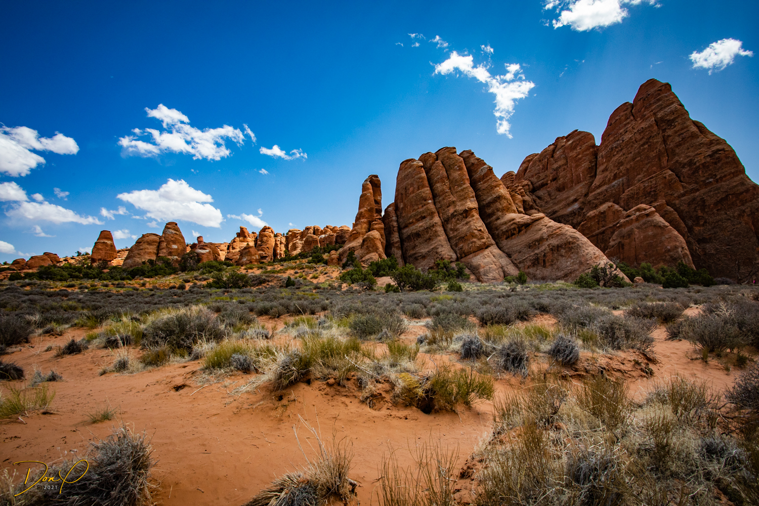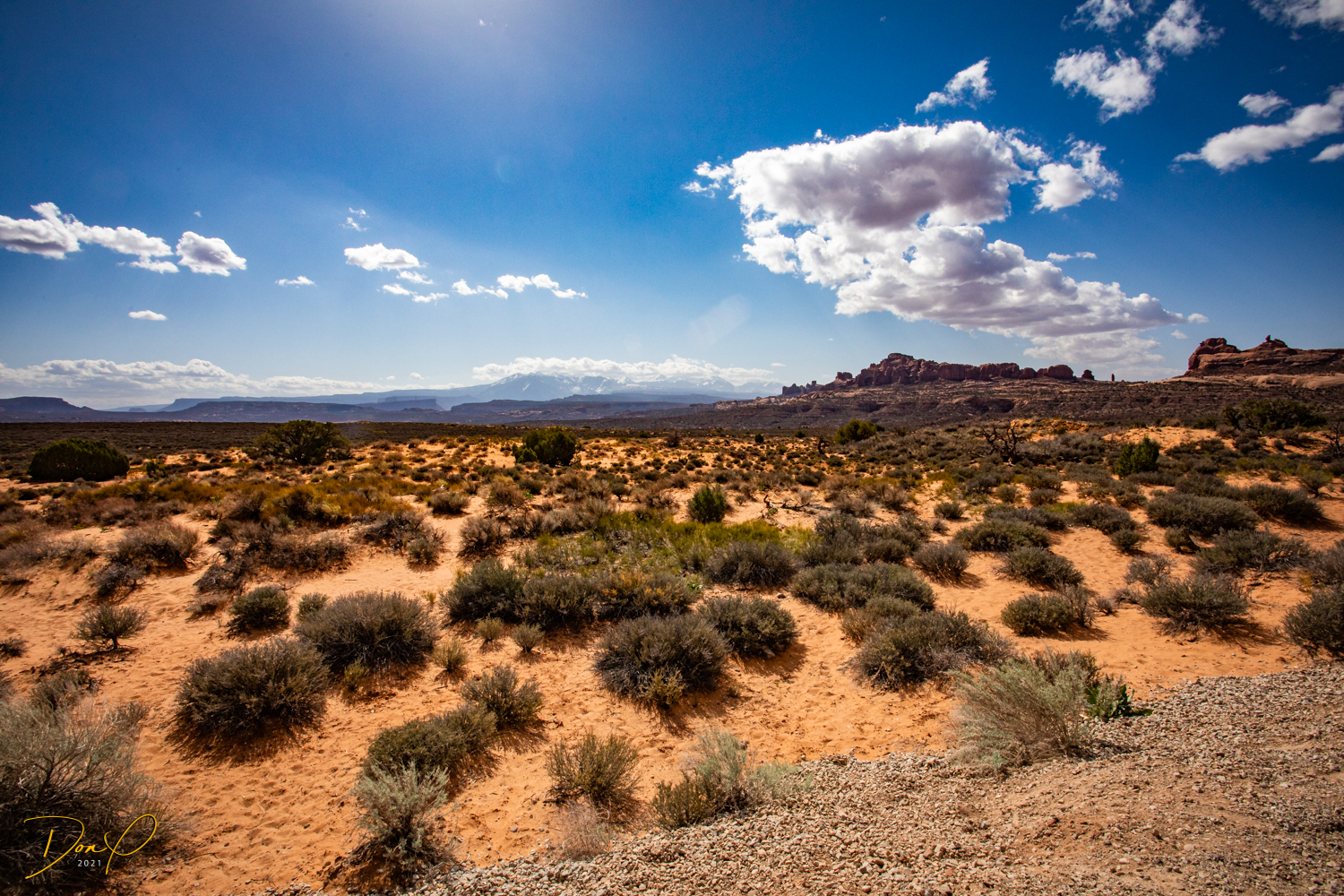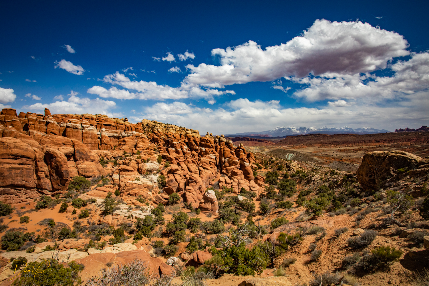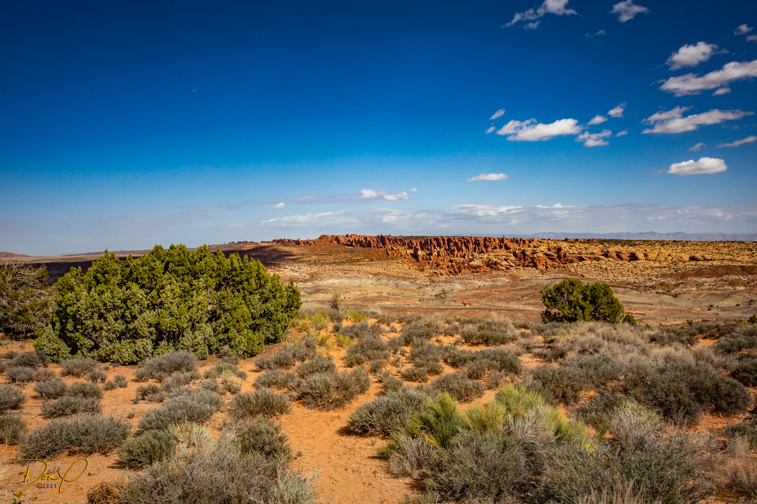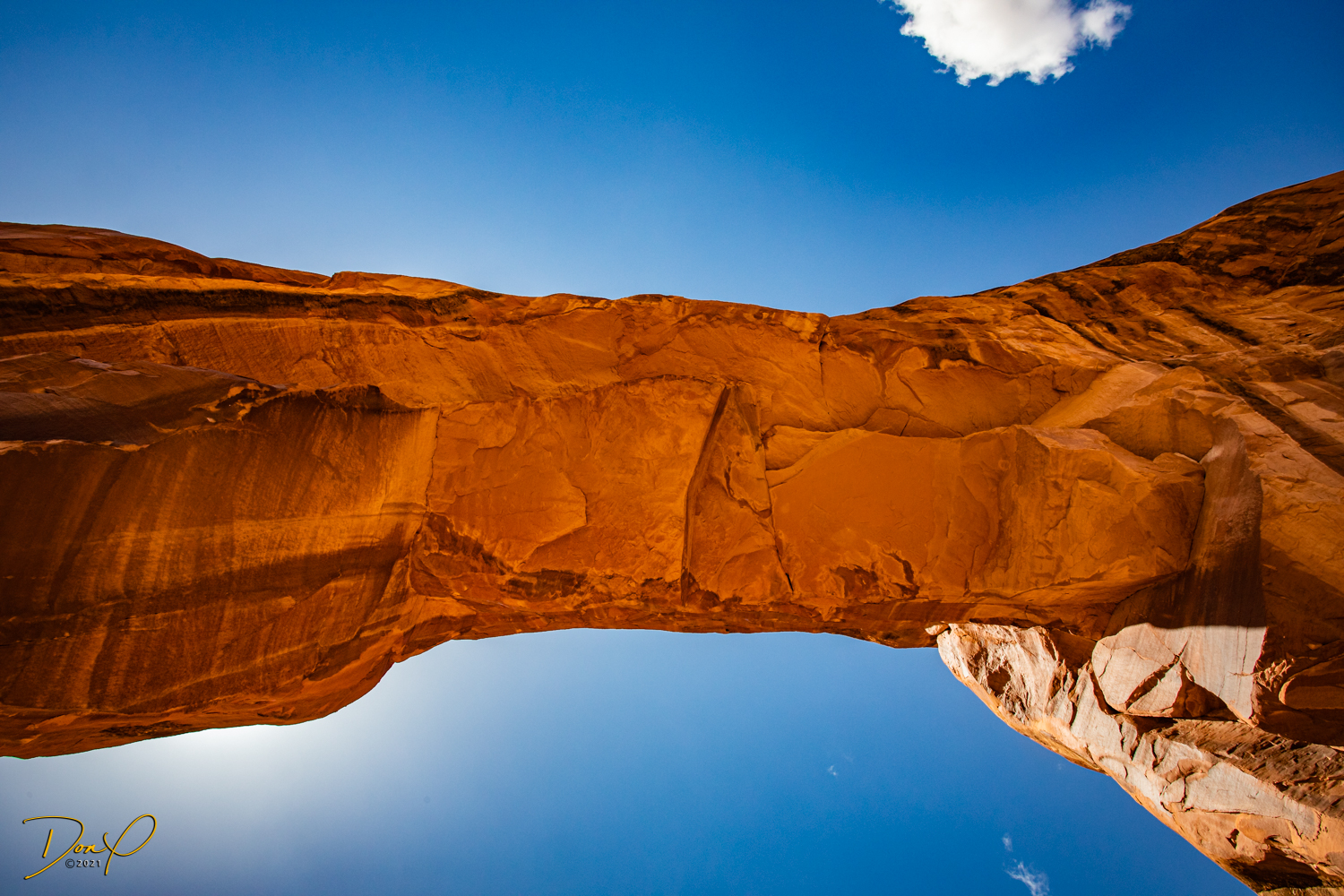 We drive The Beast of a RV back up into the park. The good thing is that I am getting much more comfortable driving it. We stop at a couple Arch Viewing sites and shoot some photos, but basically head for the far end of the Park. It was a wise choice as the crowds are building and we barely find room to park our beast. But we do and we head out on a short hike along Devil’s Garden Trail to see Pine Tree Arch, Tunnel Arch & Landscape Arch. The short hike turns a bit longer before we get to Landscape Arch. But it is worth it.