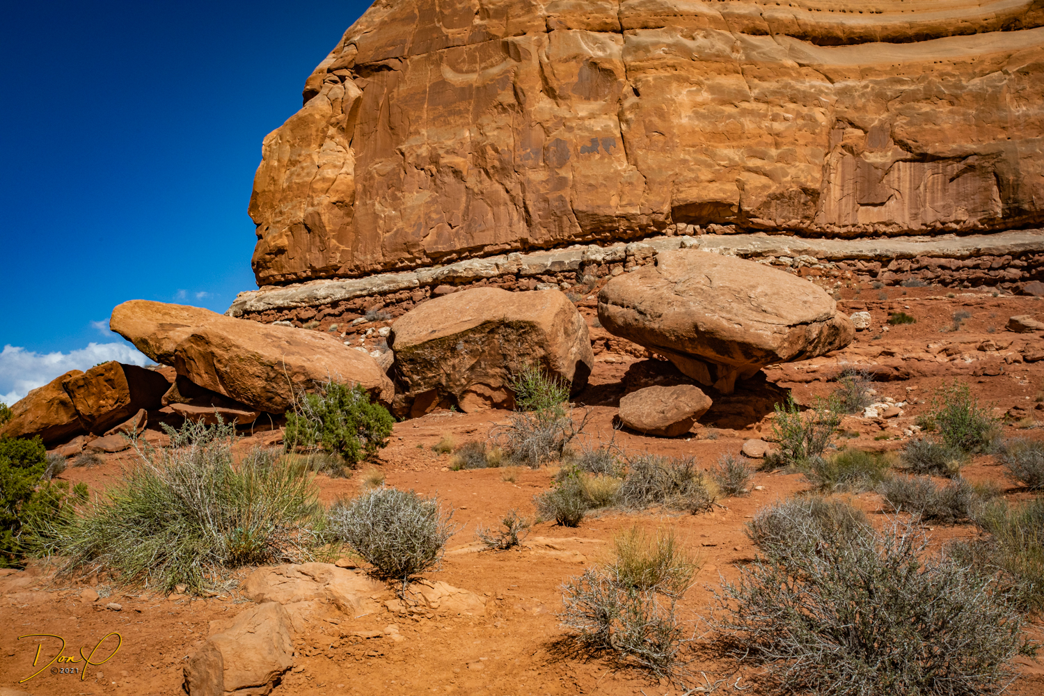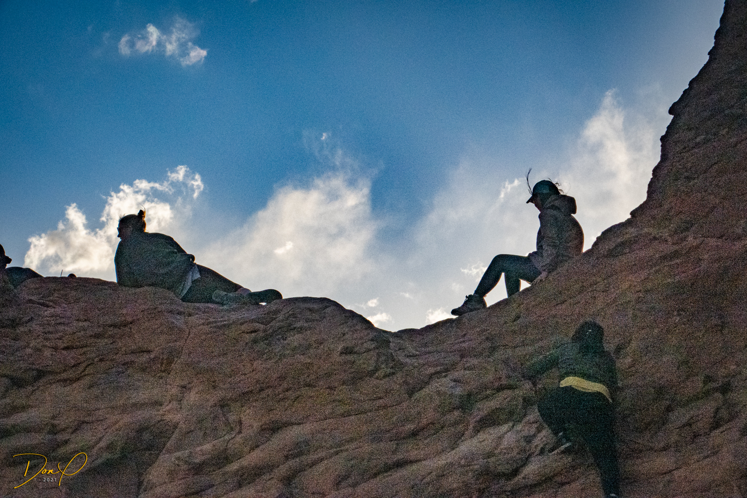 Several stops keep our cameras purring happily and All are happy! Fiery Furnace is named for the color of the place near sunset. We also find what is referred to as “Balanced Rock”. Can you find it?