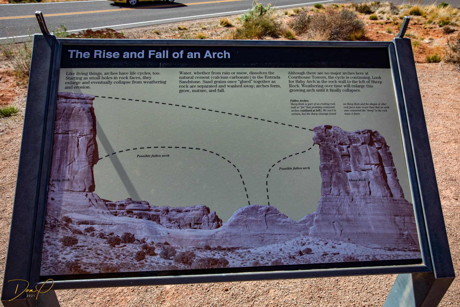 We also stop at an area called Courthouse Towers and as we are about to take a few photos, we chat pleasantly with a couple that are from Pasadena, CA. We have quite the pleasant chat with apparently like-minded people and we even exchange info! So we may even see them at some upcoming gathering back home!
