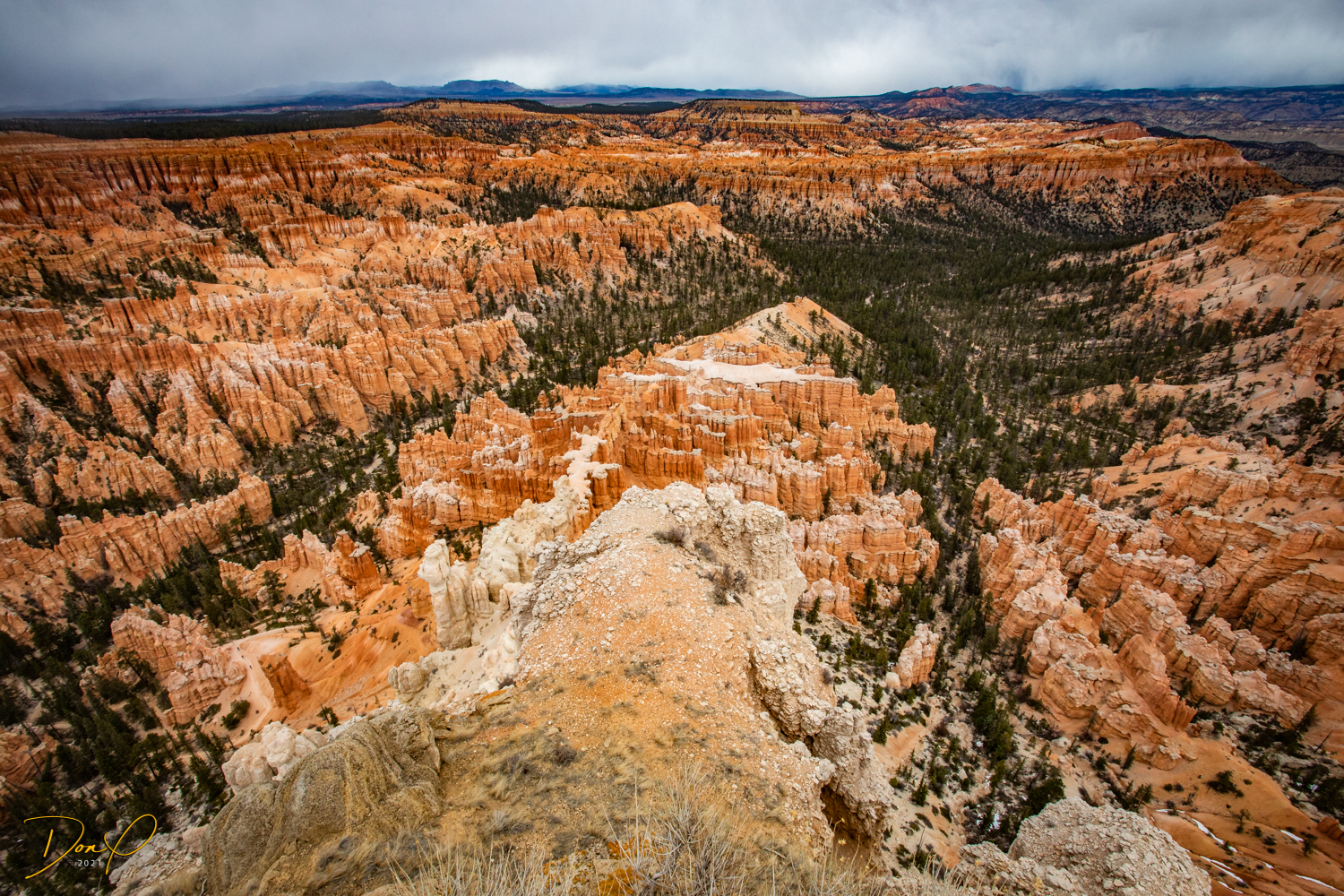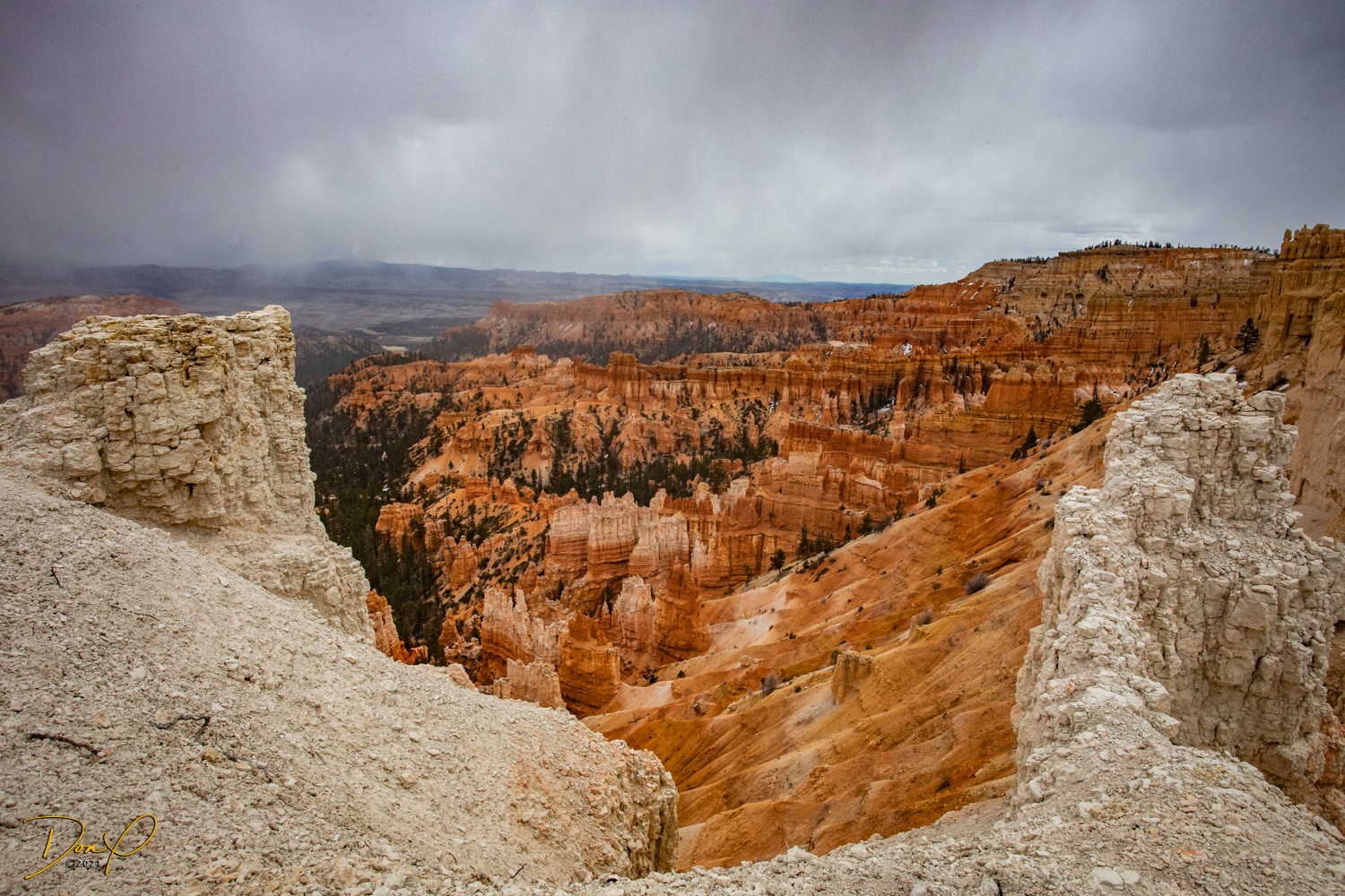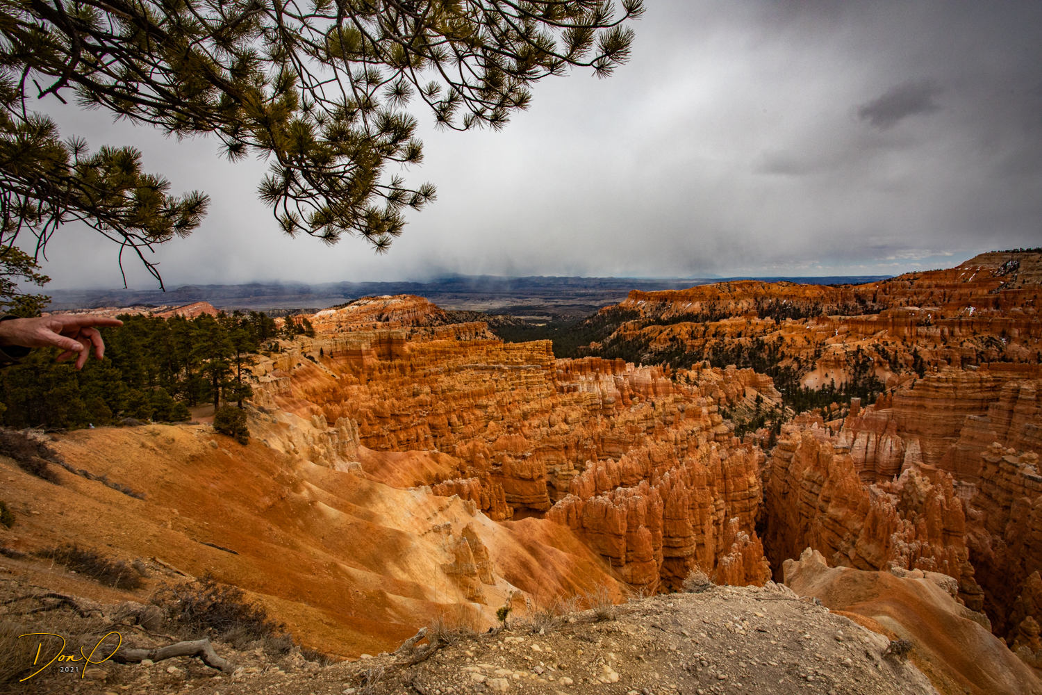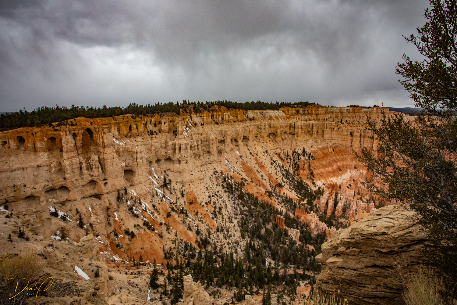 But now it is hike or take the Shuttle. The Shuttle wins. It is free and takes you around to all the viewing sites! They run every 10-15 minutes like clockwork. We get out at the farthest site, Bryce Point, that we are taken to first and we get off and walk around and thrill our cameras with activity! We wanted to hike the Rim Trail back to the next site, but this section is closed due to snow and ice, even though it is still April.