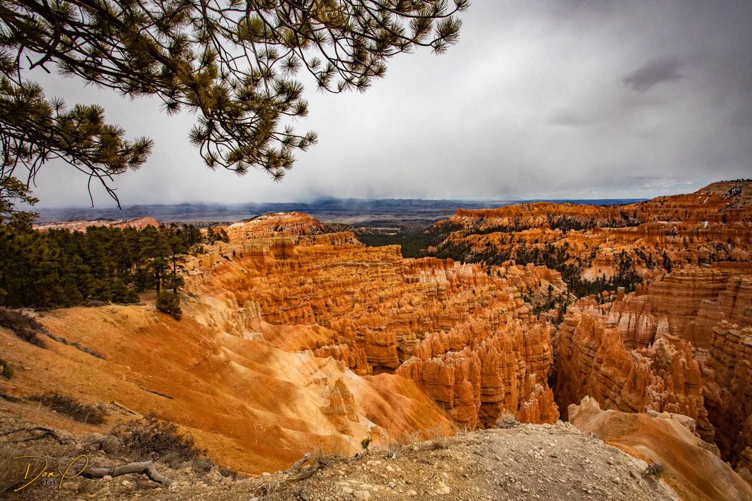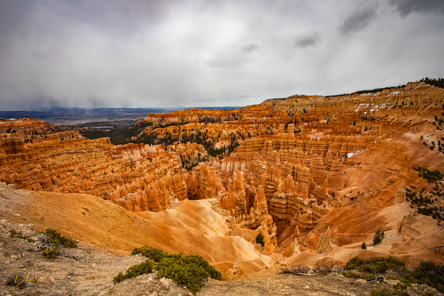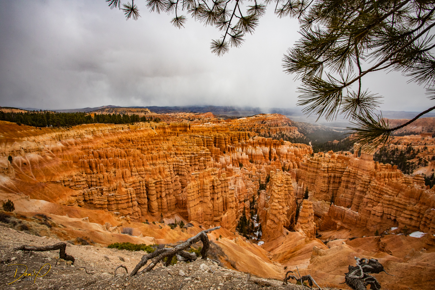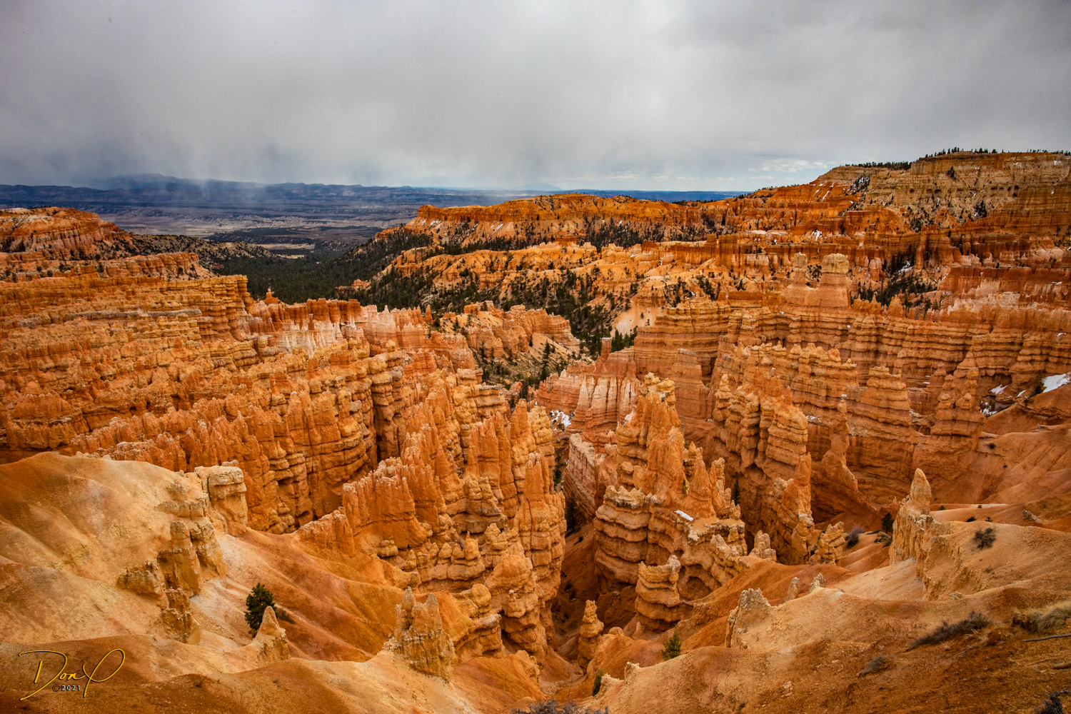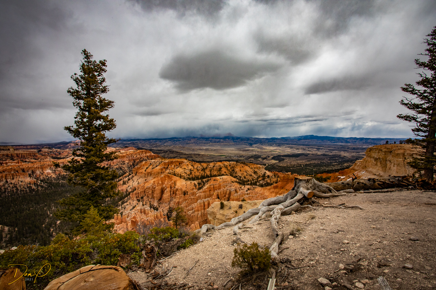 But now it is hike or take the Shuttle. The Shuttle wins. It is free and takes you around to all the viewing sites! They run every 10-15 minutes like clockwork. We get out at the farthest site, Bryce Point, that we are taken to first and we get off and walk around and thrill our cameras with activity! We wanted to hike the Rim Trail back to the next site, but this section is closed due to snow and ice, even though it is still April.