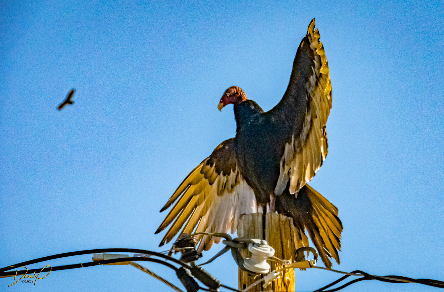 Waking up in Escalante, Utah, the location of the “Grand Staircase”, whatever that is. We never find out because we need to keep moving. So we find the one and only restaurant that is open and has breakfast food and we order Breakfast Bagels to go. Outside the restaurant we get a couple shots of a Vulture sunning itself in the early morning light!