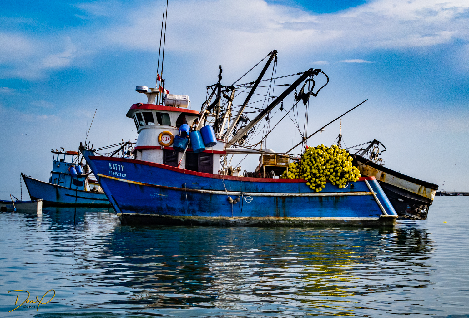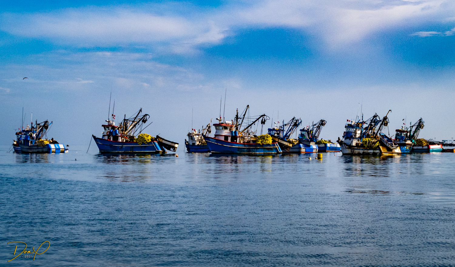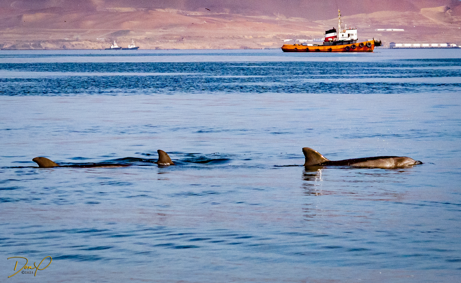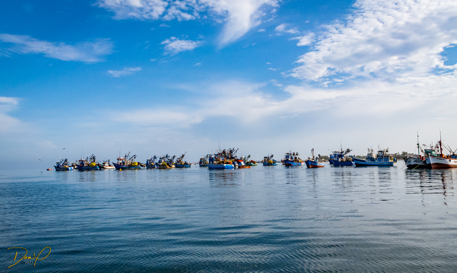 Today we awake to a beautiful morning and we walk down to the boat docks for our next adventure. We board the “Candelabro II” for a trip to the “Ballestas Islands”, nicknamed the “Galapagos of Peru”. The boat holds approximately 30 people and we are in rows of seats with a middle aisle. Our first sights are of the parked fishing boats and a pod of dolphins.