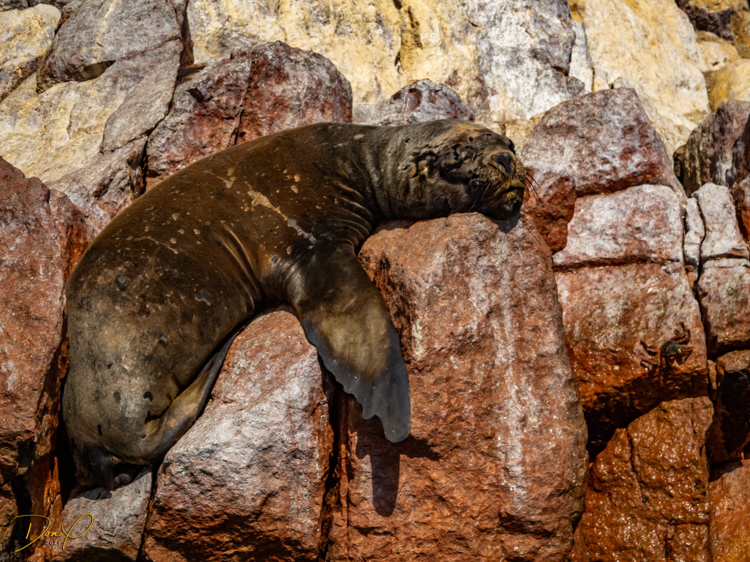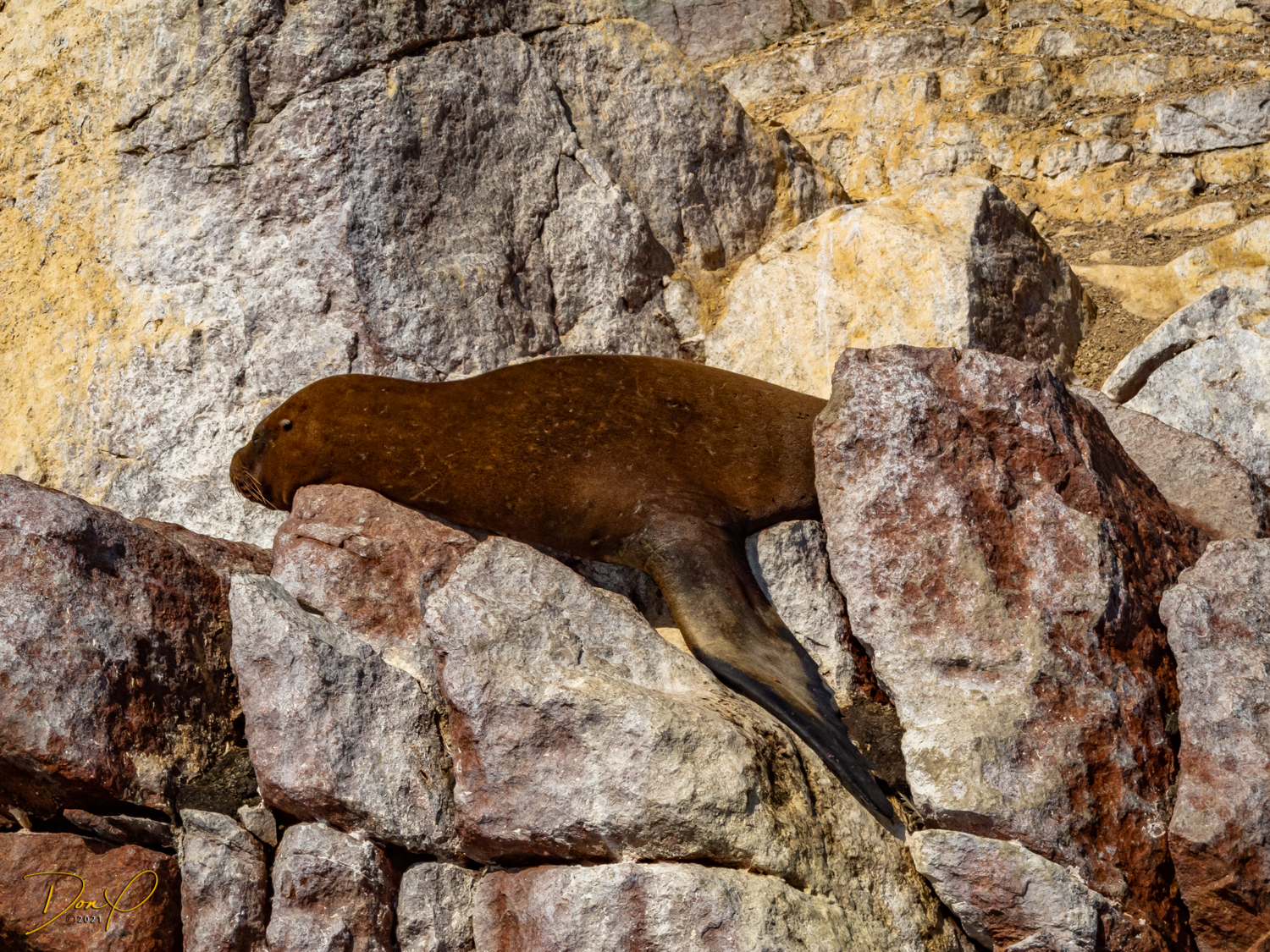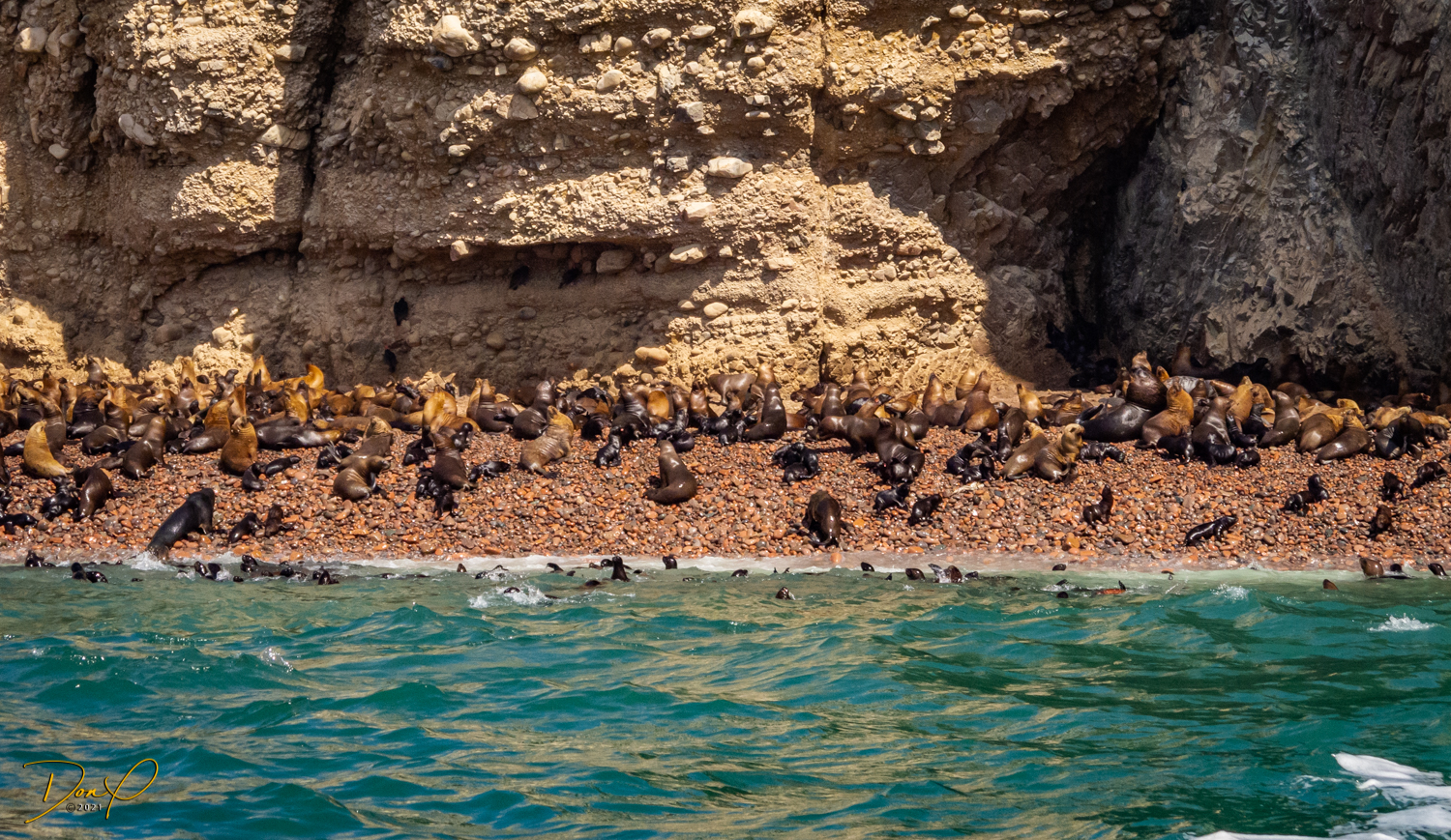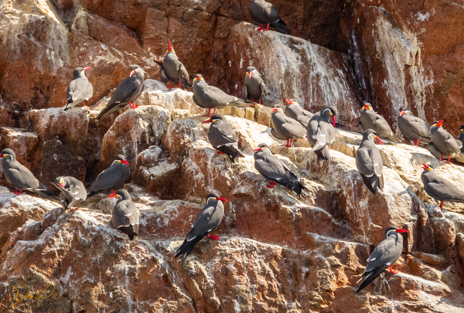 We find a group of Boobies (the bird kind, LOL), Seals sunning themselves, a Booby in flight, Inka Turns with their magnificent red beaks and feet, more Cormorants, Pelicans in flight and beaches full of Seals before we arrive back to the docks in Paracas.