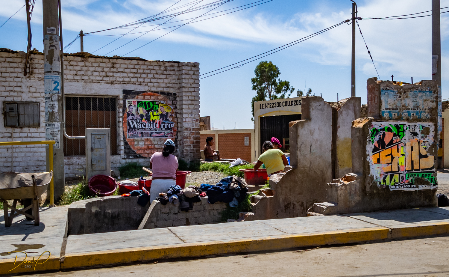 The morning has been eaten up and we are reminded that it is lunchtime. So our next taxi driver takes us first to a comfortable restaurant, but not before driving by a roadside ditch where we witness locals washing their laundry in the culvert. Once in the restaurant, “La Olla de Juanita”, we enjoy a well prepared meal of chicken and have our first “Pisco Sour”, a drink similar to a Margarita only with Pisco, a type of Brandy that is proprietary to Peru. The drink is topped off with whipped egg whites, go figure. But it was delicious!