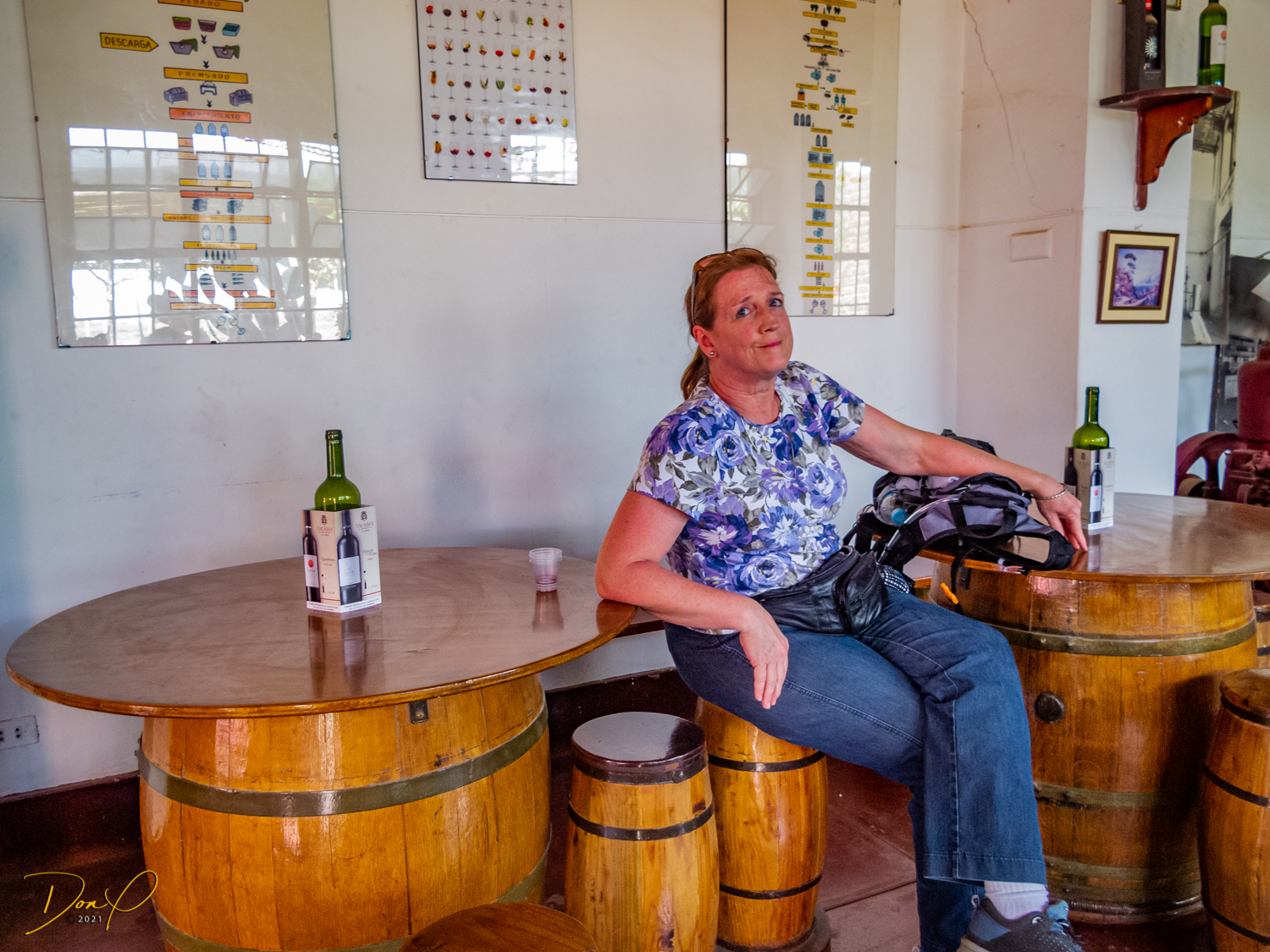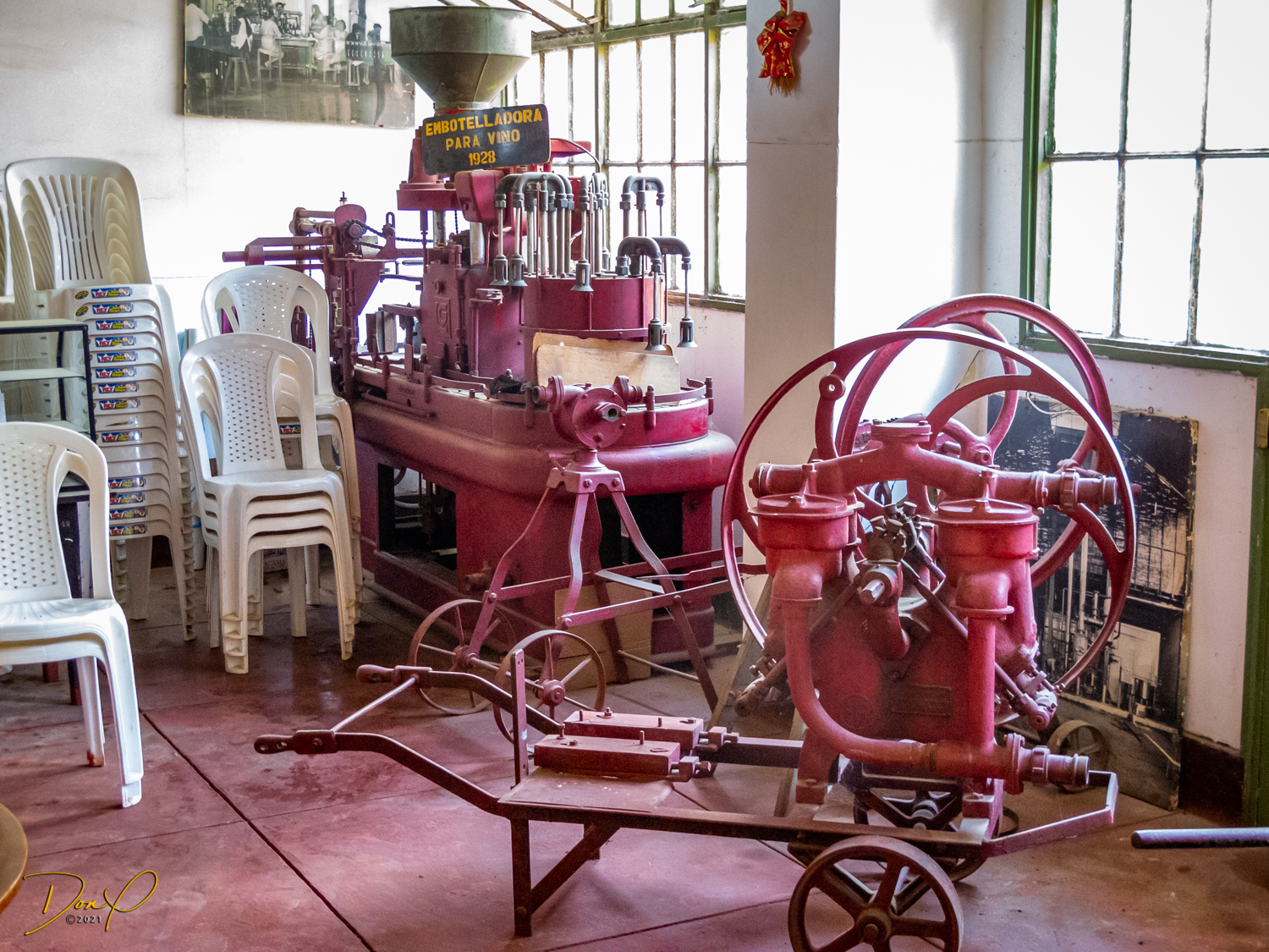 Our guide takes us around and gives us the history of the winery and shows us some of the old and some of the new equipment that is used to make wine and to make Pisco! She even takes us up into a bell tower to see an overview of the vineyards. Elee hams it up and pretends to take a drink directly from a keg and my camera chuckles!