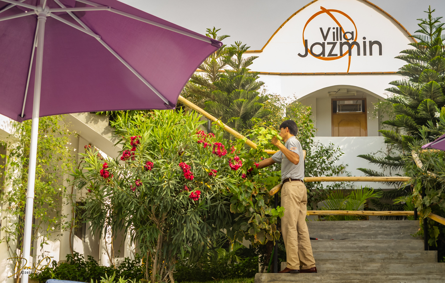 It is very desolate here. The police checkpoint checks our papers and we go through a toll booth. We even see a grape vineyard before going into a manicured city square. But more desolation in the form of half destroyed building assault our senses. But then we arrive and check into our next hotel, the Villa Jazmin. This place is a 5 star oasis in the middle of a 3rd world country.