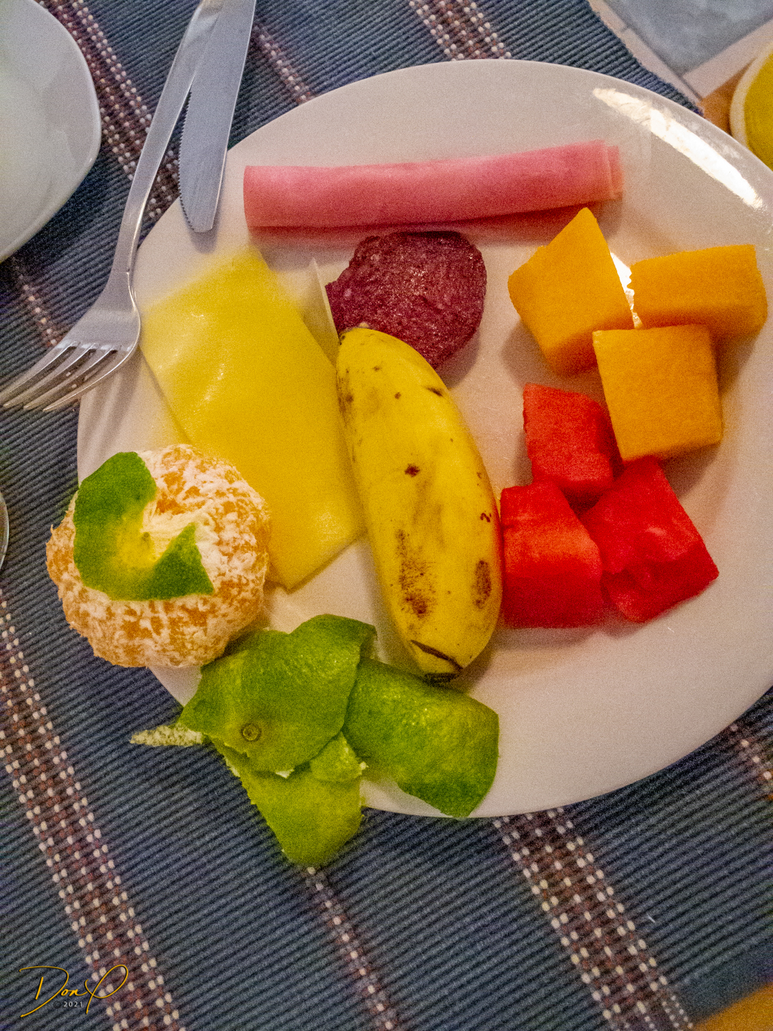 We go to the complimentary breakfast offered by the hotel and it is a spread of fruit. Was hoping for some eggs and meat, but then I realize where I am and happily scarf down a plateful of the delicious fruit. Across the street from the hotel, we see we are back in the 3rd world country after a few blissful hours of luxury.