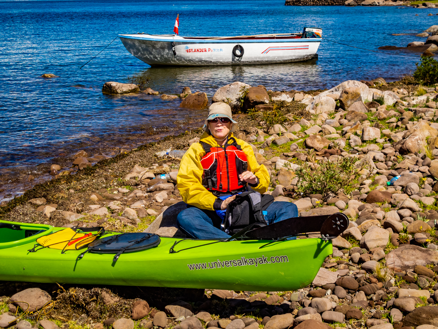Well, anyway, I get to shore on Taquile Island first. Our guide actually struggles to catch me because he wants to be ashore first to assist us out of the kayaks! The guide tells us we are his slowest clients. We tell him our ages and ask him if we are his oldest clients and he laughs and says we are!