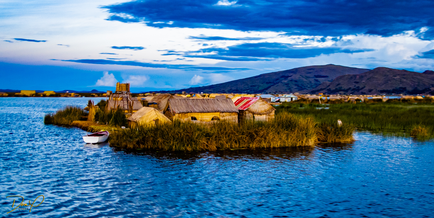So we wake up after an amazingly good night’s sleep in a strange bed with a still warm rock at the foot of it and we go into the dining room and have a wonderful breakfast of fresh fruit and coffee! Our host, still dressed in her traditional native garb sees us out and down to the docks. We also left her with an amount of Peruvian Pesos but I can’t remember the amount after all these years and it’s not important. Just to know that we did. Our private 50 passenger boat is there with our guide and driver, their names have also eluded me now. They take us down the shore to another dock a mile away and we disembark for our next planned adventure. You can see by the photos what it is comprised of.