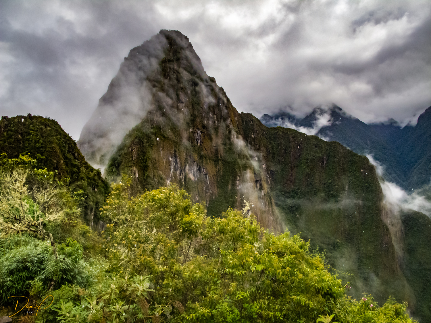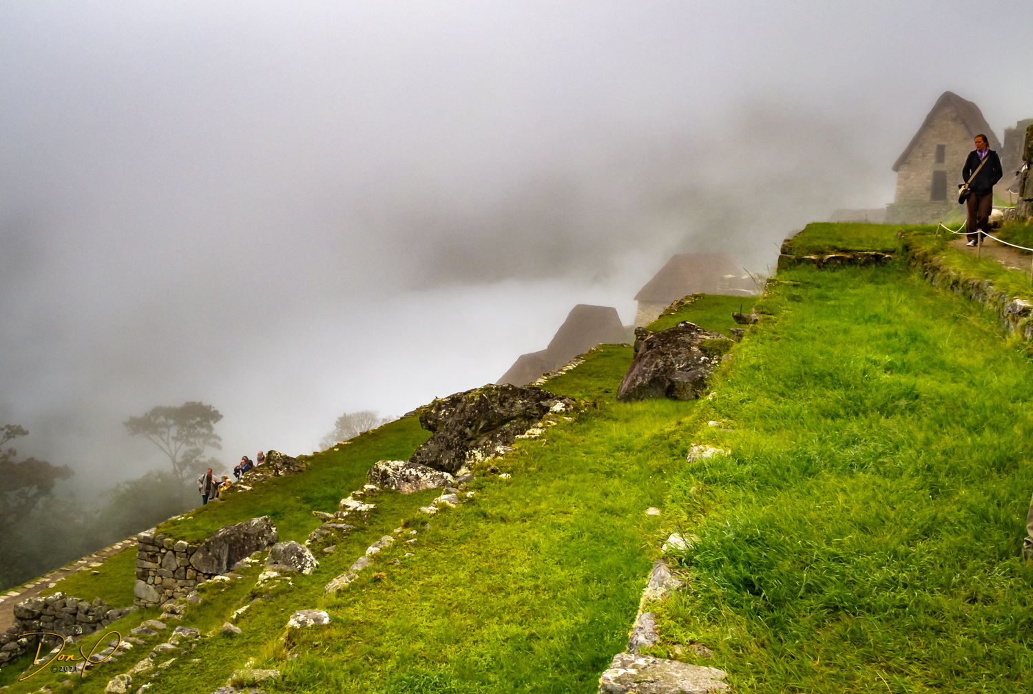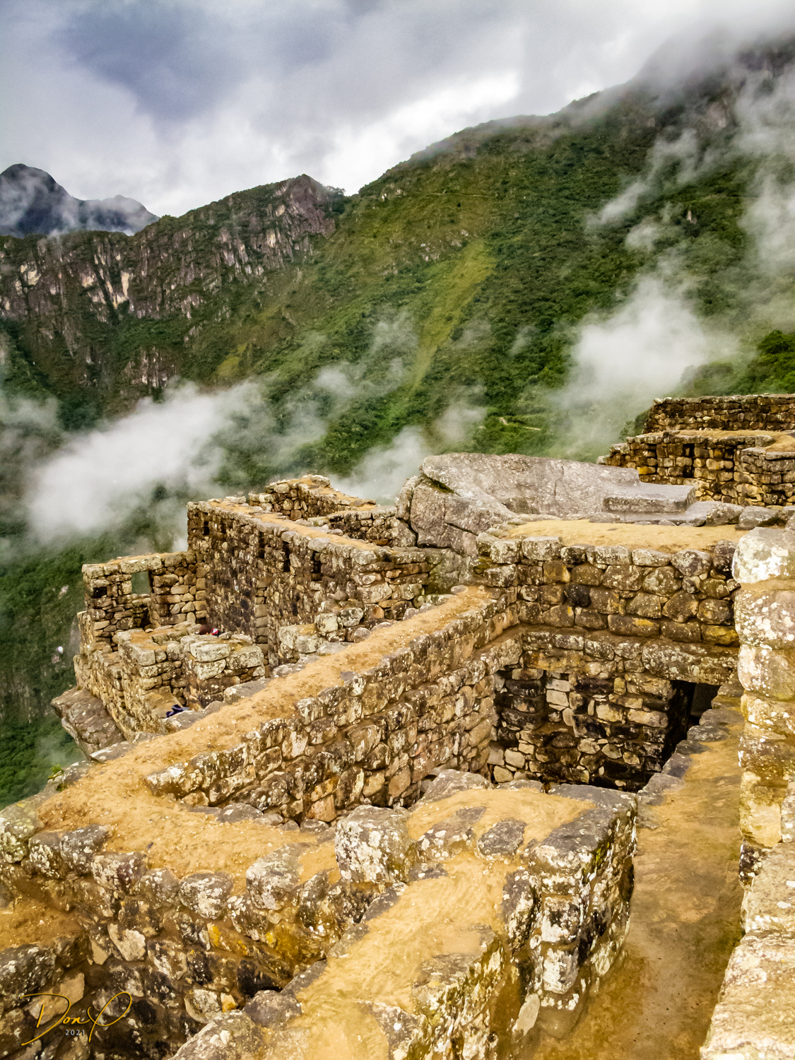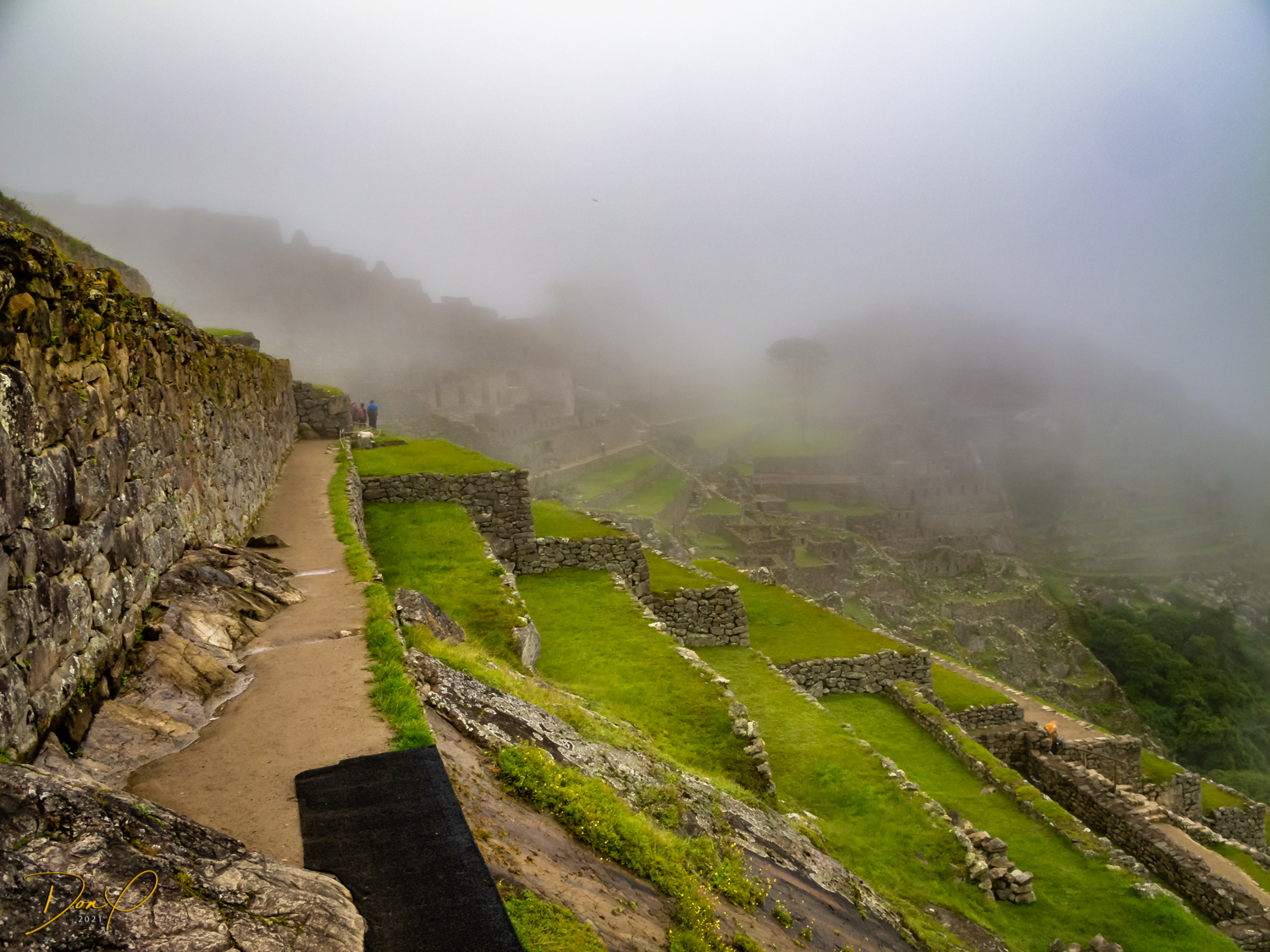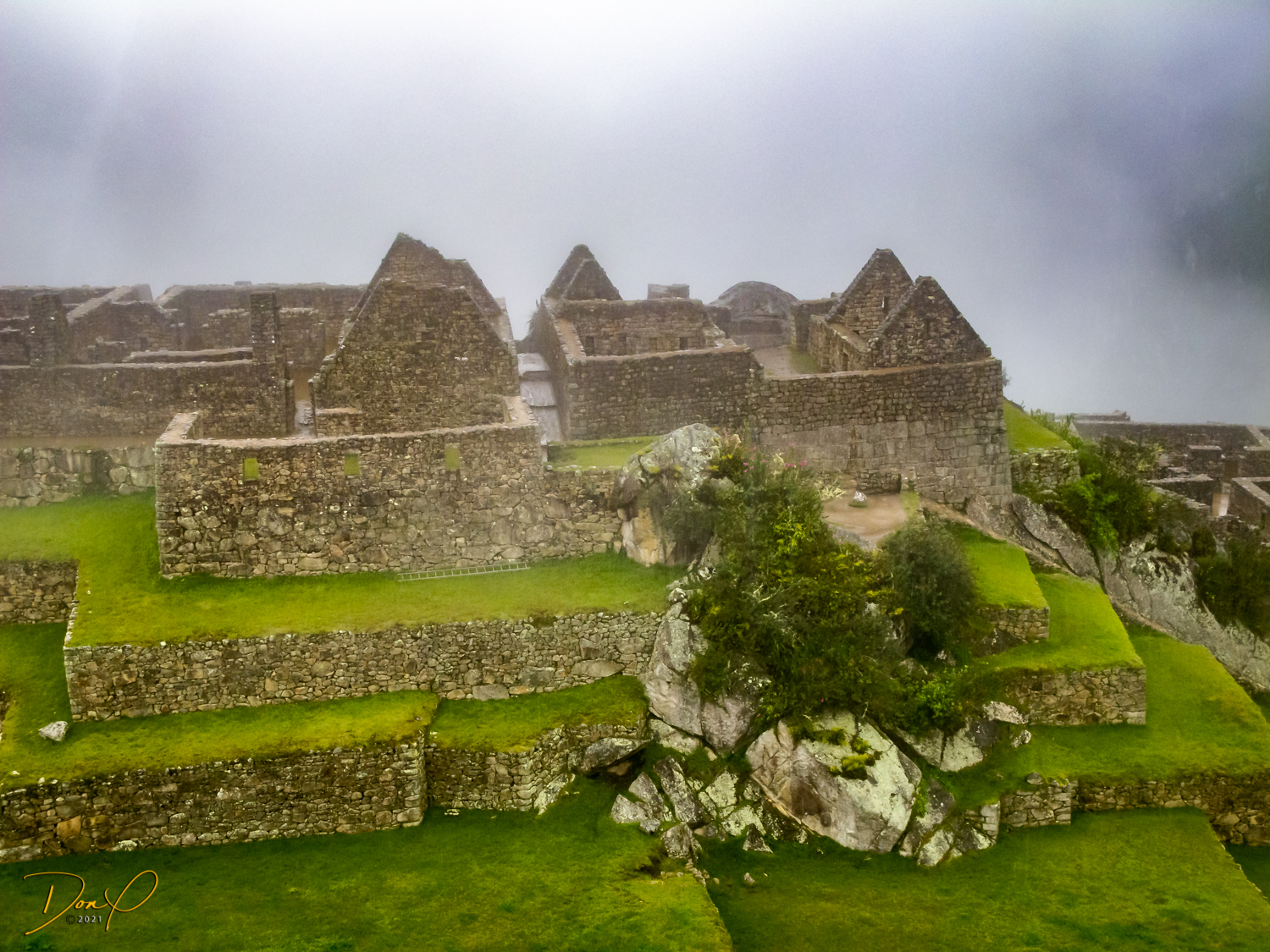 So we get into Machu Picchu about 9 AM, take a few sunlit photos of the place and head for the back where there is a shelter with a roof on it where you wait to enter. Waynu Picchu has two entry times. 10 AM and 2 PM. We have tickets for 10 AM. Only 200 people can enter at each time slot and we had to buy these special passes 6 months ago. They sell out.