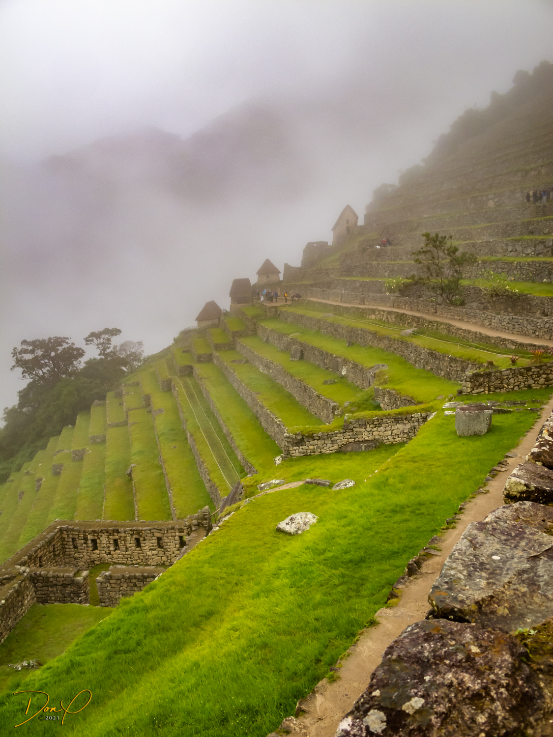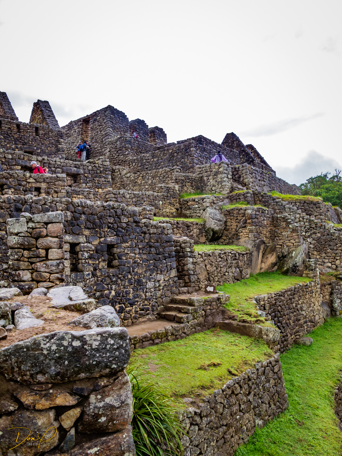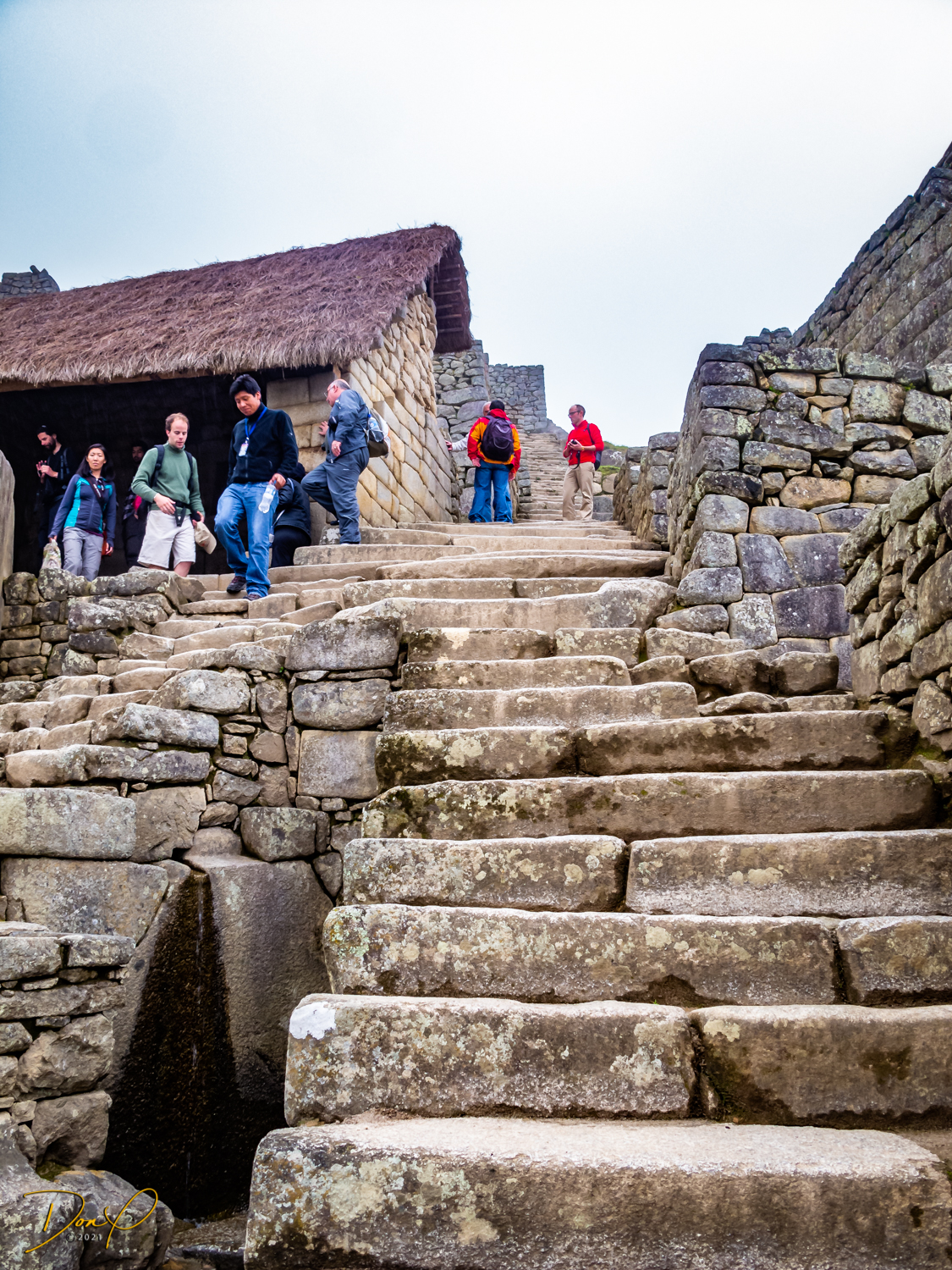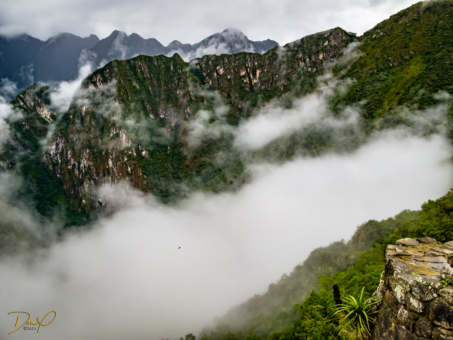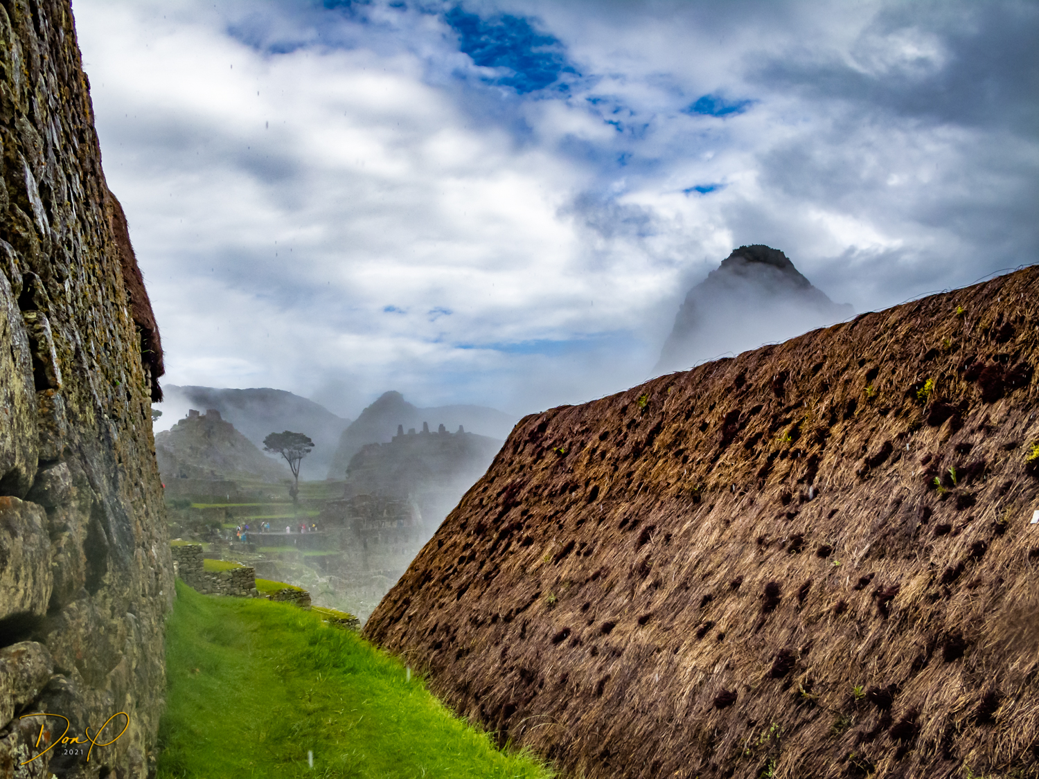 So we get into Machu Picchu about 9 AM, take a few sunlit photos of the place and head for the back where there is a shelter with a roof on it where you wait to enter. Waynu Picchu has two entry times. 10 AM and 2 PM. We have tickets for 10 AM. Only 200 people can enter at each time slot and we had to buy these special passes 6 months ago. They sell out.