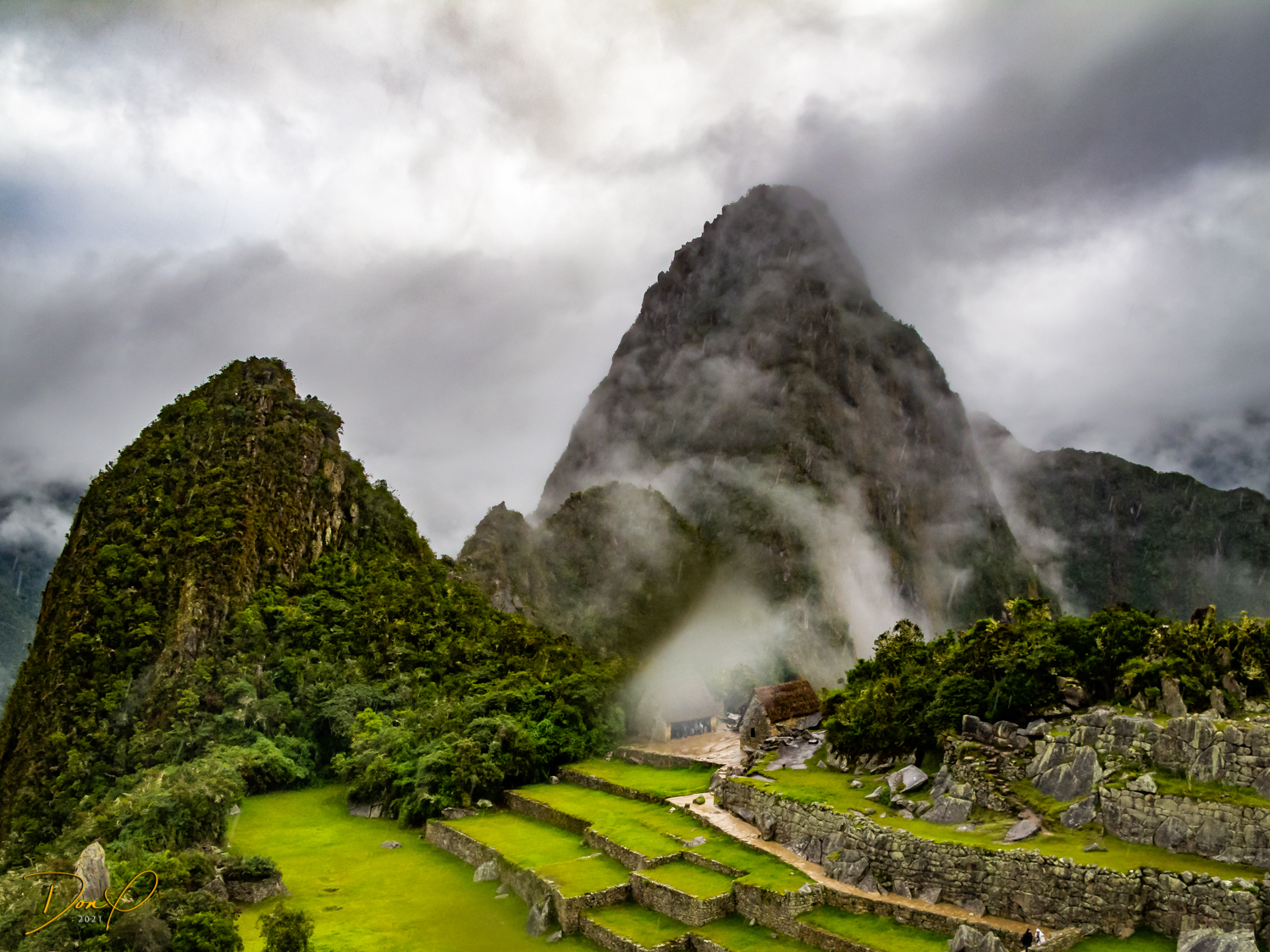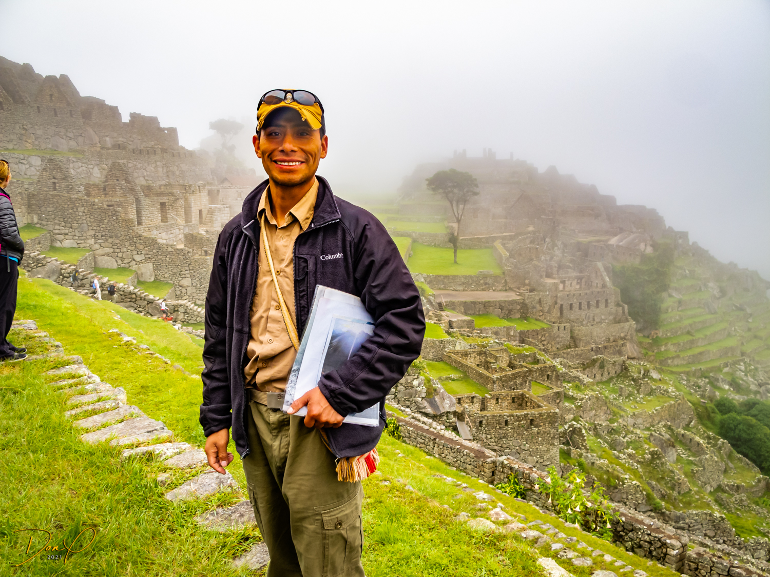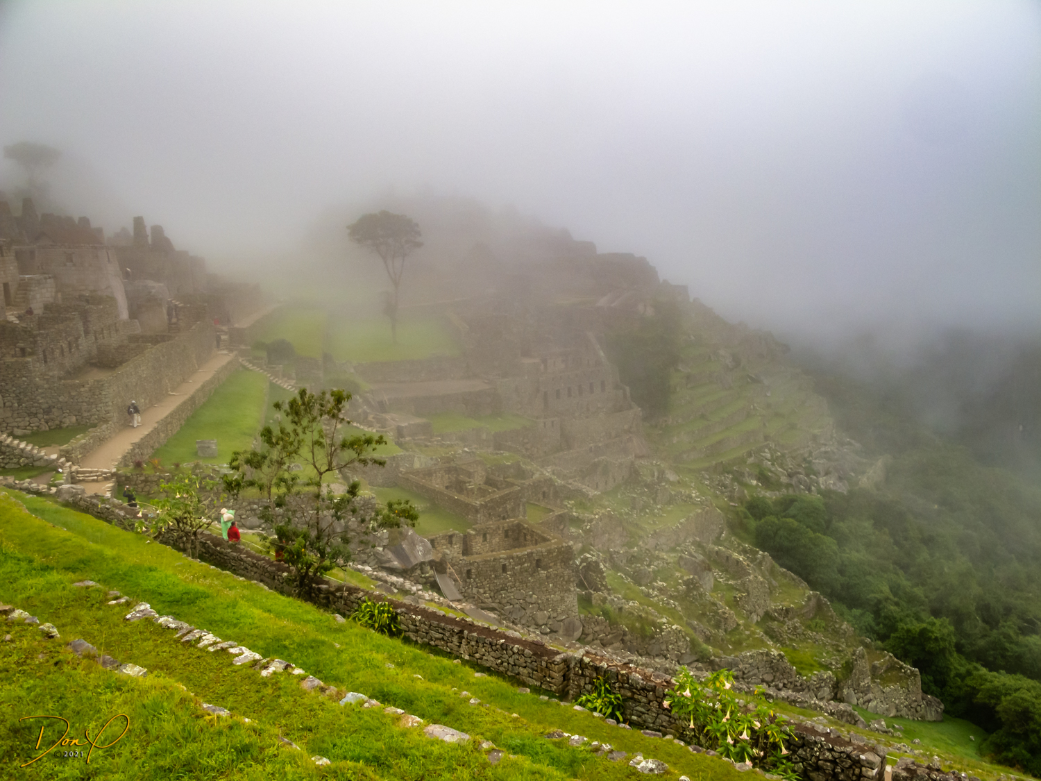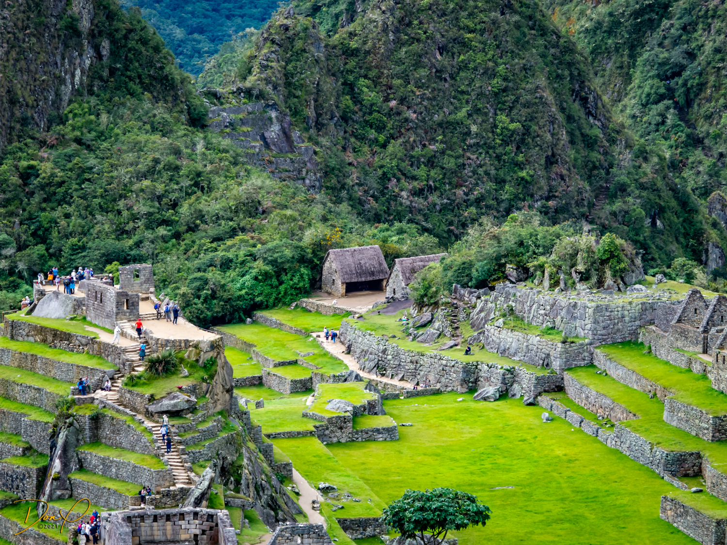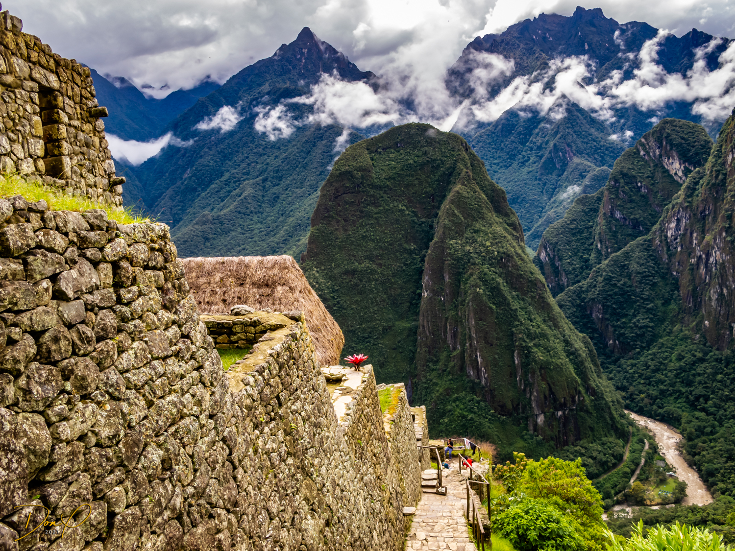 So we get into Machu Picchu about 9 AM, take a few sunlit photos of the place and head for the back where there is a shelter with a roof on it where you wait to enter. Waynu Picchu has two entry times. 10 AM and 2 PM. We have tickets for 10 AM. Only 200 people can enter at each time slot and we had to buy these special passes 6 months ago. They sell out.